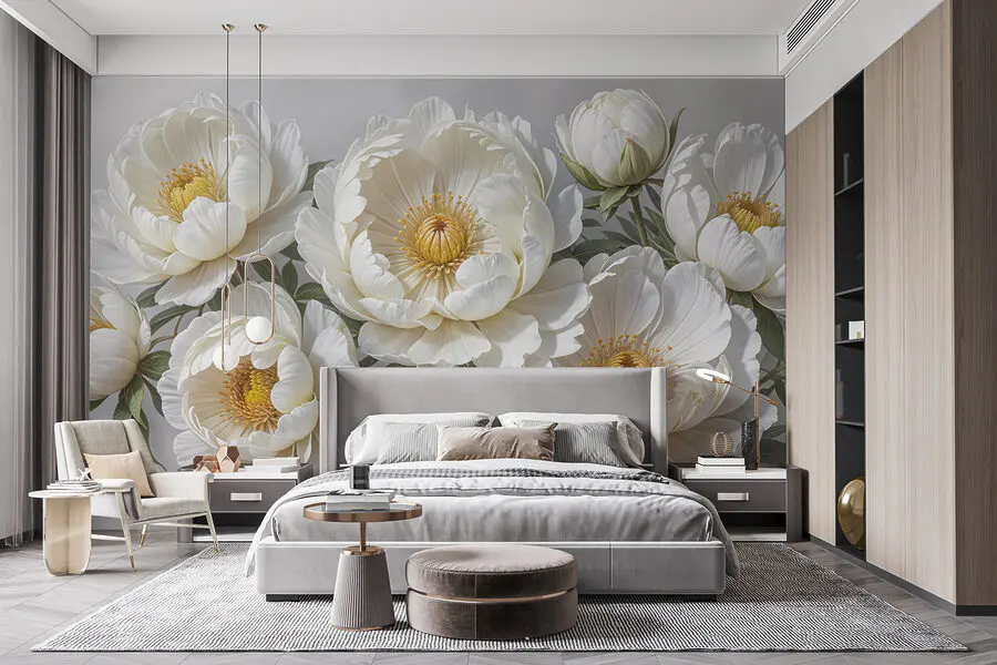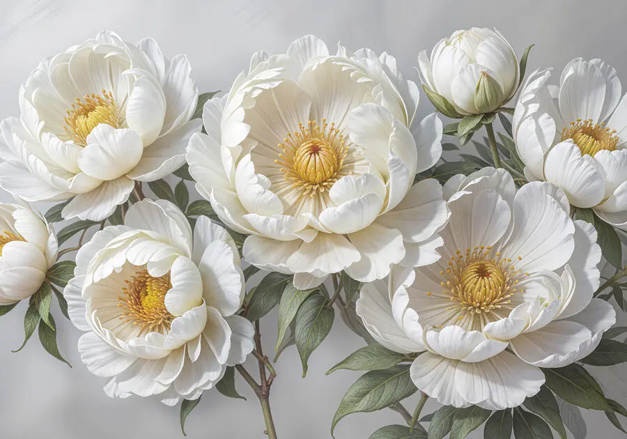 Haben Sie jemals einen Raum betreten und sofort ein Gefühl der Ruhe verspürt? Das ist der Zauber der “Fototapeten Group of White Flowers”. Diese atemberaubenden Pfingstrosen blühen mit ihren sanften, geschwungenen Blütenblättern förmlich von der Wand auf – wie ein zartes Frühlingsgeflüster in Ihrem Wohnbereich. Stellen Sie sich vor, Sie schlürfen einen Kaffee, während diese Schönheiten das Morgenlicht einfangen. Sie sind nicht nur Wandbilder, sie sind ein kleiner Urlaub, eine heitere Flucht an Ihrer eigenen Wand. Perfekt, um jeden Raum zu verschönern, der einen Neuanfang braucht. Spüren Sie die Blütenblätter schon?