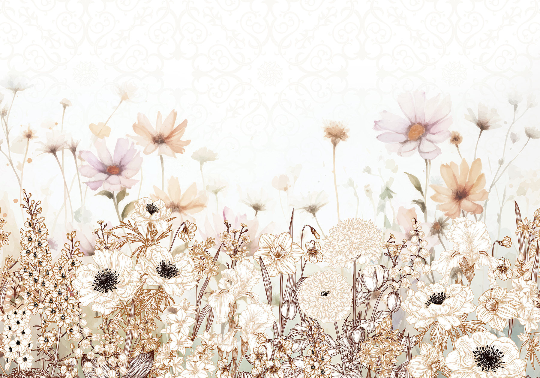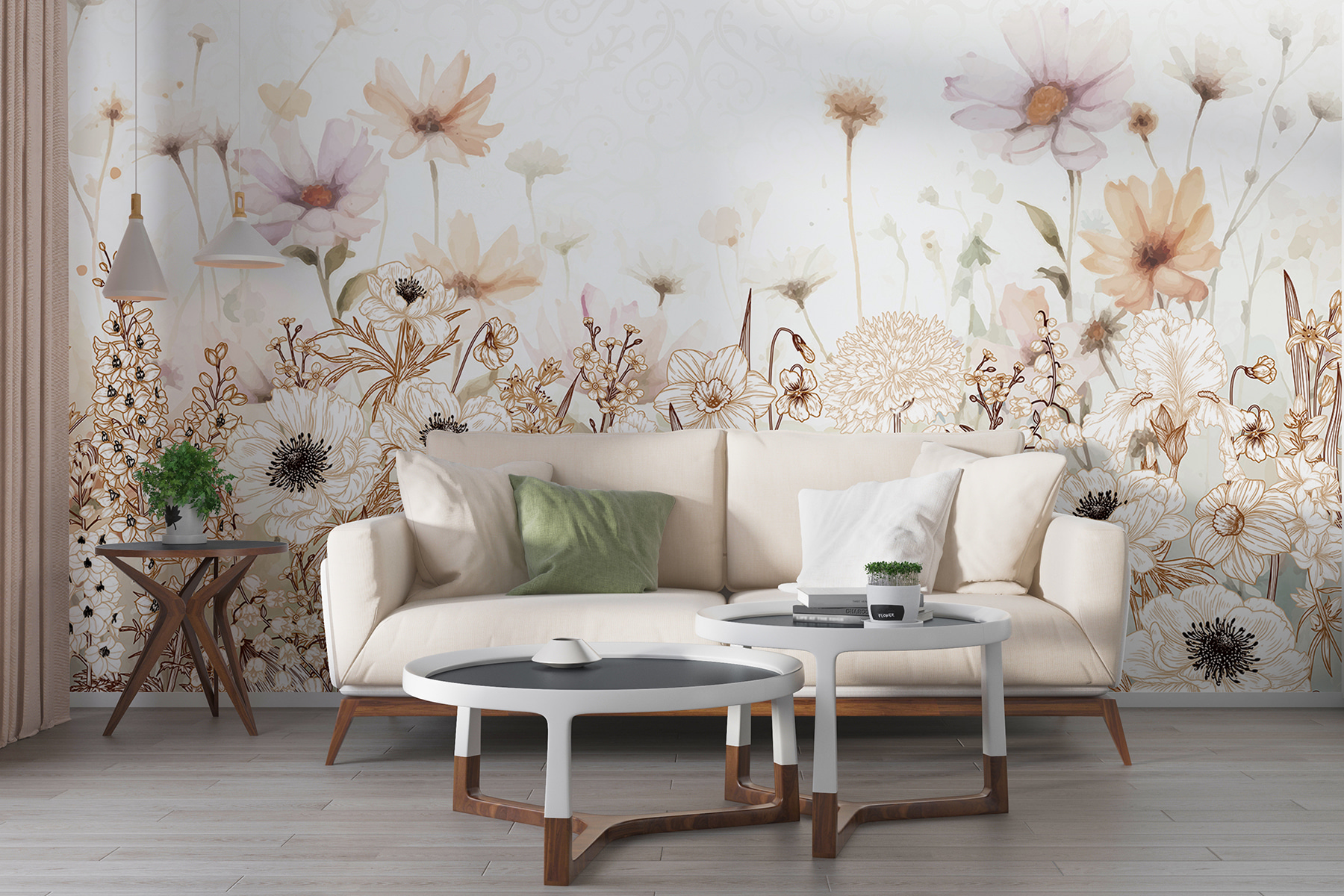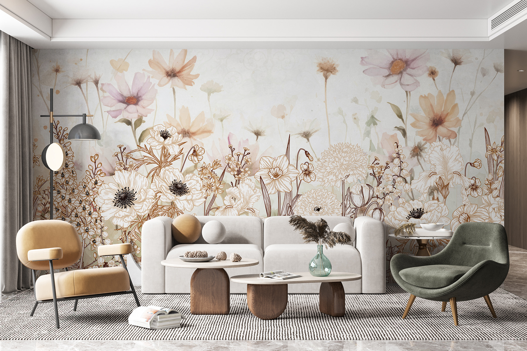 Verwandeln Sie jeden Raum mit “Ethereal Blooms in Muted Expressions” in einen ruhigen Zufluchtsort. Dieses Wandbild zeigt eine verträumte Mischung aus Aquarellblumen, die über die Wand tanzen und Geschichten von Frühlingswiesen und sanften Brisen flüstern. Stellen Sie sich vor, Sie wachen mit dieser sanften Palette von Pastellfarben auf, und jede Blüte fühlt sich wie eine kleine Umarmung für Ihre Sinne an. Perfekt für eine gemütliche Leseecke oder eine beruhigende Schlafzimmeratmosphäre. Es ist, als wäre man von der Natur umgeben, ohne lästige Allergien zu haben. Glauben Sie mir, es ist schwer, etwas anderes als Freude zu empfinden, wenn Sie diese Schönheit um sich haben. Wundern Sie sich nicht, wenn Ihre Freunde Ihre Wand mehr loben als Ihren neuen Pullover!