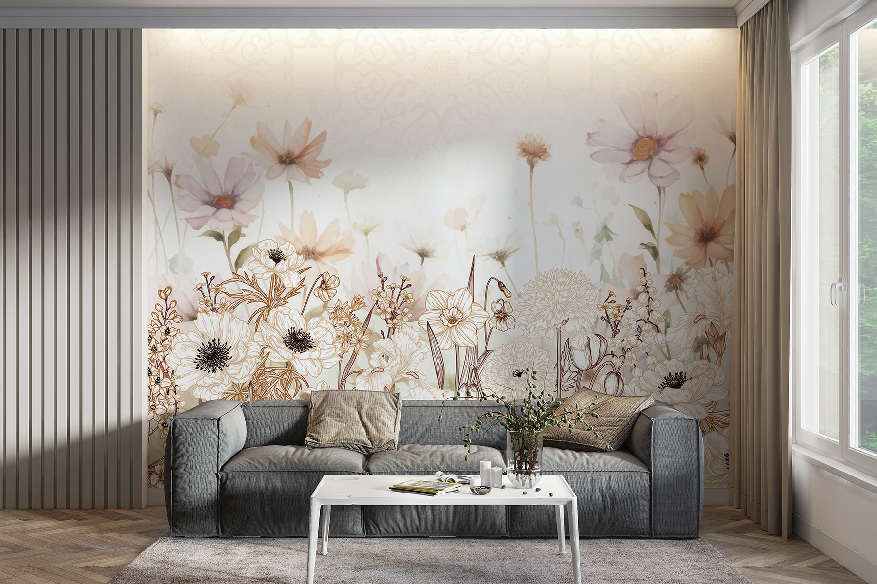 Sehen Sie sich vor dem Kauf genau an, wie Ihr Raum mit einer neuen Tapete aussehen wird. Professionelle Visualisierung durch erfahrene Designer ohne Kosten oder Kaufverpflichtung.