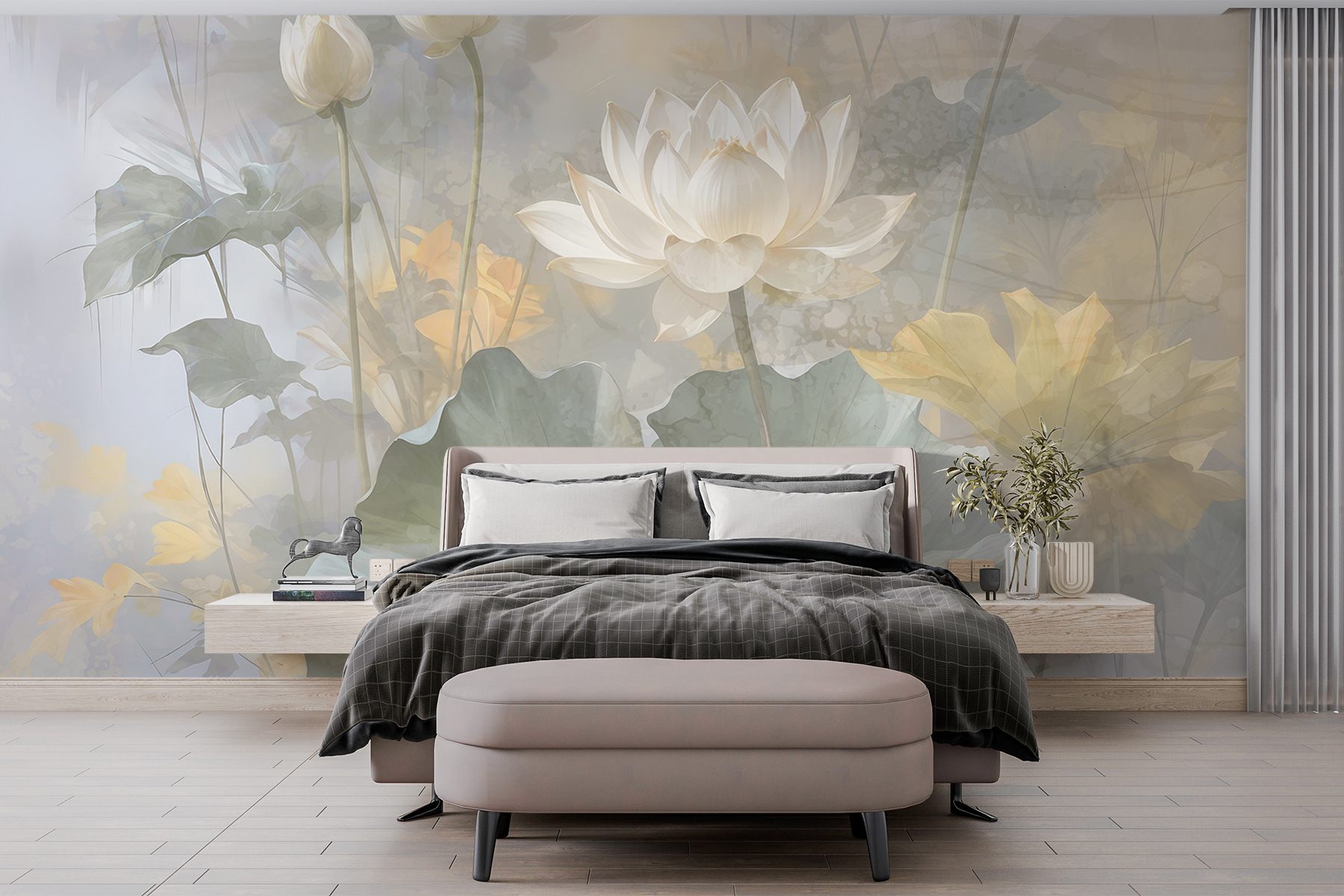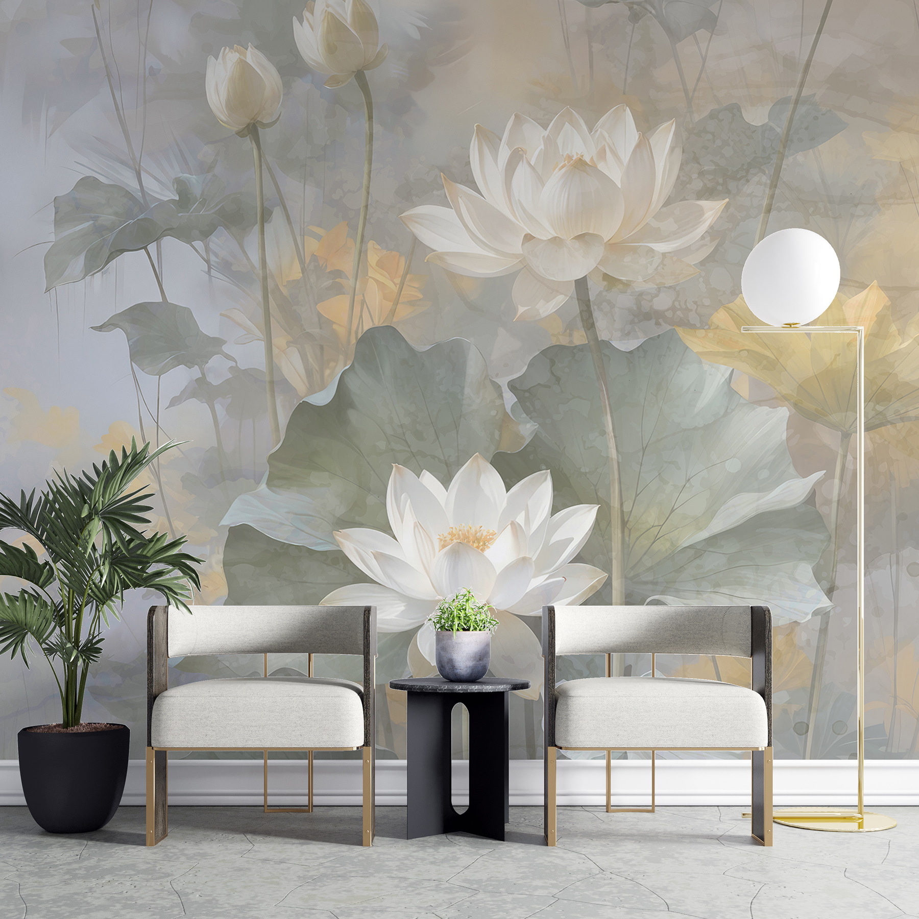 Stellen Sie sich vor, Sie wachen in einem Raum auf, der von einer sanften Traumlandschaft erfüllt ist – “Lotusblumen in traumhaftem Dunst” ist nicht nur eine Wandmalerei, sondern ein Flüstern der Gelassenheit. Diese Lotusblumen scheinen mühelos an Ihren Wänden zu schweben und fangen Licht und Schatten in einem Tanz ein, der sowohl zart als auch kühn ist. Perfekt für alle, die sich nach Ruhe sehnen und dennoch einen Hauch von skurriler Schönheit genießen. Vielleicht verweilen Sie noch ein wenig länger bei Ihrem Morgenkaffee und verlieren sich in seinem sanften Reiz. Es ist ein Stück, das sich wie ein sanfter Seufzer anfühlt, eine Umarmung der stillen Eleganz der Natur.