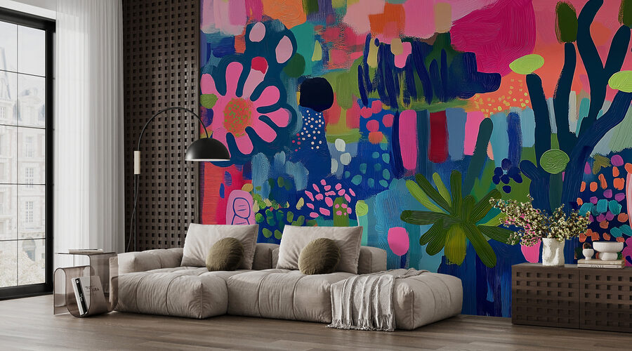 Stellen Sie sich vor, Sie betreten einen Raum und werden von einer gemütlichen, farbenfrohen Umarmung aus Pflanzen und Blumen umhüllt – klingt traumhaft, oder? Dieses Wandbild ist im Grunde eine Gartenparty für Ihre Wände. Kräftige Farbspritzer tanzen miteinander und schaffen ein fröhliches Durcheinander, das nur ein echter Künstler perfektionieren kann. Es fühlt sich an wie ein Spaziergang durch einen skurrilen Garten, ohne dass man einen grünen Daumen braucht. Perfekt, um jedem Raum einen Hauch von Leben zu verleihen – eine Wandumarmung zum Wohlfühlen. Los, lass deine Wände blühen!