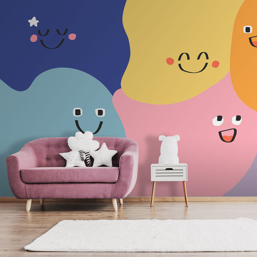 Bringen Sie einen Hauch von Freude in jeden Raum mit dieser lebhaften Fototapete, die eine verspielte Mischung aus bunten Formen und fröhlichen Gesichtern zeigt. Es ist wie ein sofortiger Stimmungsaufheller an Ihrer Wand! Stellen Sie sich vor, Sie betreten einen Raum, der sich lebendig anfühlt – jeder Blick wird von fröhlichen Gesichtern erwidert, die Sie fast anzulächeln scheinen. Perfekt für eine gemütliche Ecke oder ein lebhaftes Spielzimmer, verleiht es einen bezaubernden Touch, der die Kreativität anregt. Freunde und Familie werden es lieben, vielleicht sogar ein wenig schmunzeln. Es ist nicht nur Dekoration, es ist ein Fest der Laune und Wärme, das Ihren Raum mühelos in einen lustigen Zufluchtsort verwandelt. Wer würde sich nicht schon beim Anblick seiner Wände glücklich fühlen wollen?