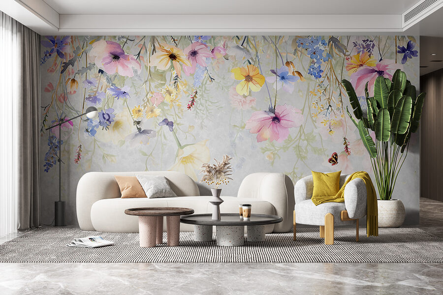 Stellen Sie sich vor, Sie betreten einen Raum und finden sich in einem verträumten Garten wieder, in dem Blumen Geheimnisse flüstern und Schmetterlinge spielerisch mit der Brise flirten. Dieses Wandbild verwandelt nicht nur eine Wand, sondern entführt Sie auf eine Wiese voller pastellfarbener Blüten und zarter Flügel. Spüren Sie, wie die Ruhe über Sie hereinbricht und Ihr Raum mit Leben erfüllt wird – perfekt, um Kreativität zu wecken oder einfach nur nach einem hektischen Tag zu entspannen. Es ist, als ob Sie einen Frühlingsmorgen in Ihr Zuhause einladen, ohne dass Sie etwas gießen müssen. Ihre persönliche Oase, ohne Ungeziefer!