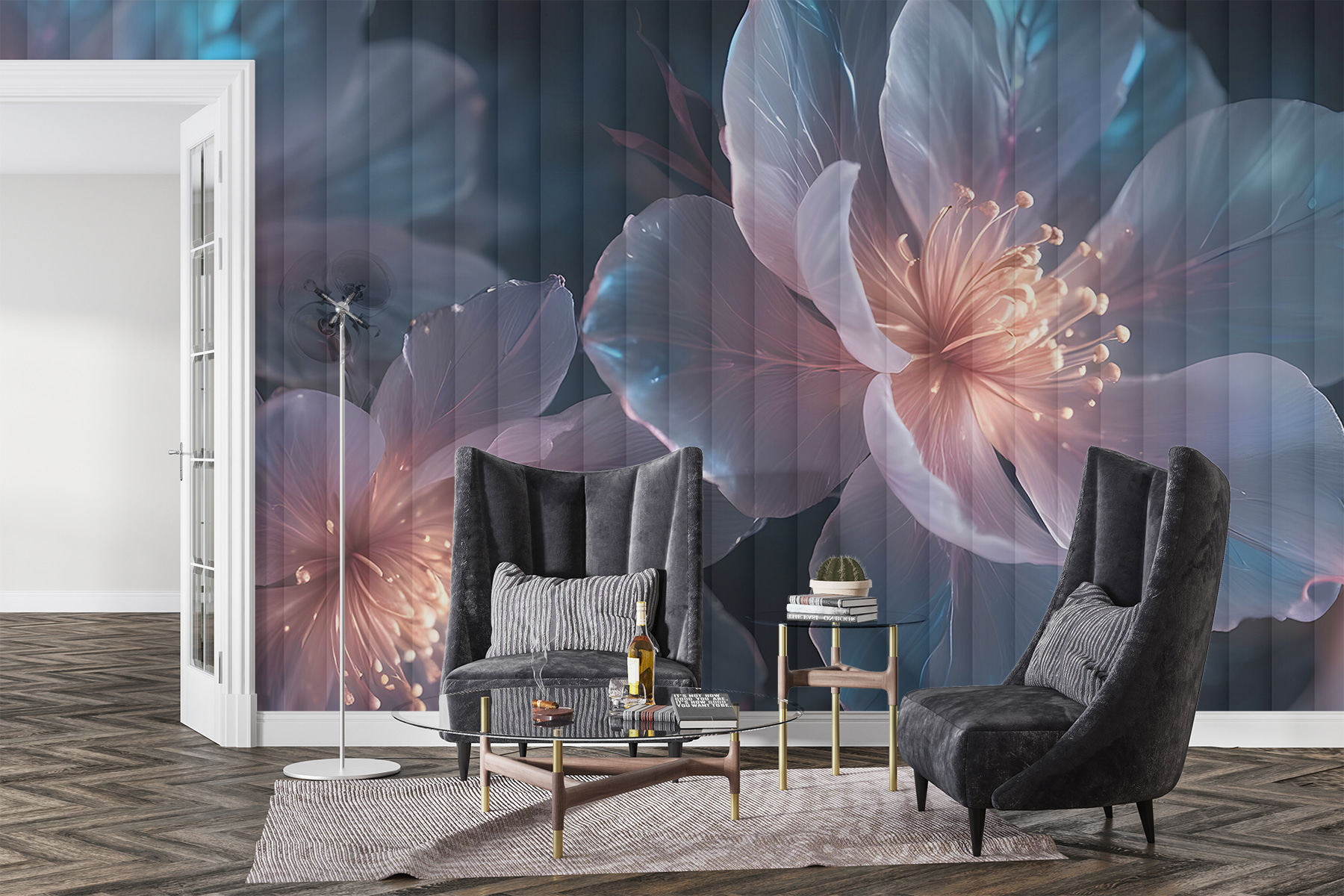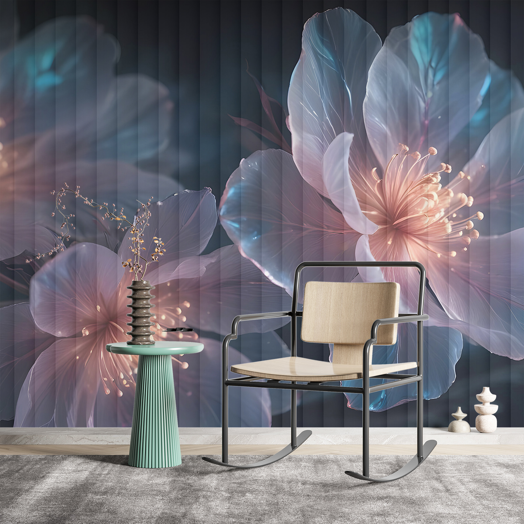 Verwandeln Sie Ihren Raum mit dem bezaubernden Wandbild “Ethereal Blooms in Luminous Hues” (Ätherische Blüten in leuchtenden Farben). Stellen Sie sich vor, Sie betreten einen heiteren Garten, in dem zarte Blüten zum Entspannen und Träumen einladen. Die künstlerische Farbmischung erzeugt ein sanftes Leuchten, das sich wie eine warme Umarmung anfühlt und in jedem Raum eine beruhigende Stimmung erzeugt.