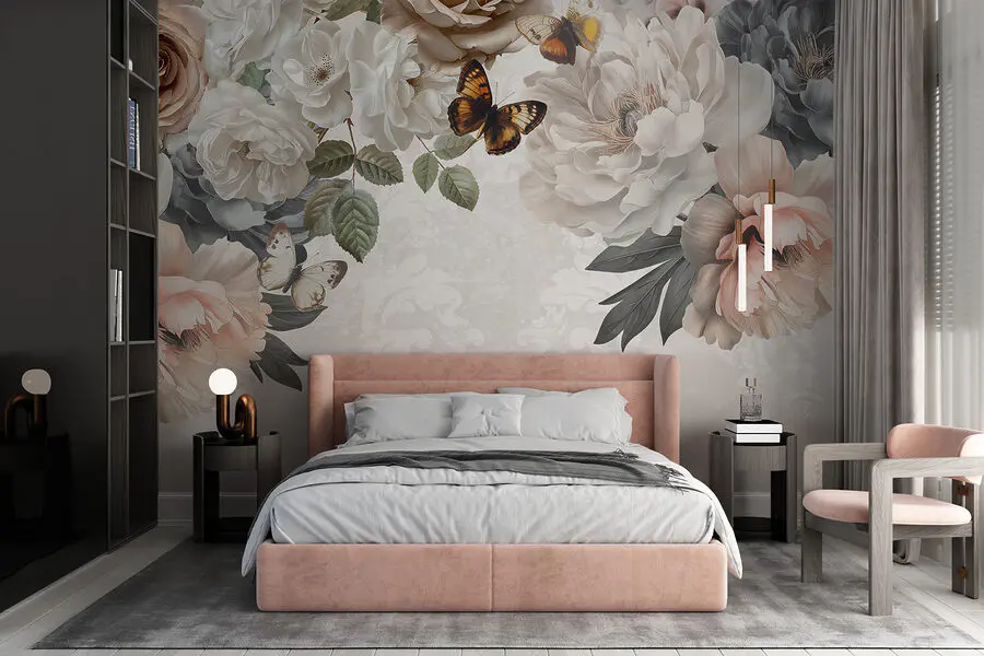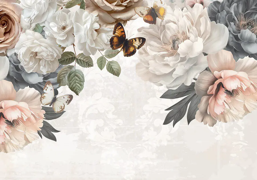 Stellen Sie sich vor, Sie betreten einen Raum und fühlen sich, als wären Sie gerade in einen verträumten Garten getreten, mit einer leichten Brise im Gesicht. Diese Fototapete “Blumengruppe mit Schmetterlingen” ist nicht nur Dekoration, sondern auch eine Flucht. Rosen und Pfingstrosen tanzen umher, während flatternde Schmetterlinge für einen Hauch von Laune sorgen. Perfekt für alle, die der Meinung sind, dass Wände mehr können als nur das Dach zu halten – sie sollten auch Geschichten erzählen. So wird der Alltag ein bisschen weniger gewöhnlich und viel schöner. Ideal für Räume, die einen Hauch von natürlichem Charme haben wollen!