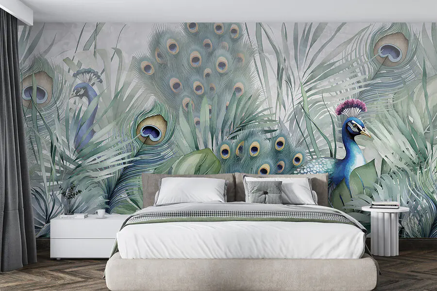Stellen Sie sich vor, Sie betreten einen Raum, in dem Sie jeden Tag von den leuchtenden Federn eines Pfaus und üppigem Grün begrüßt werden – das hebt die Stimmung sofort, oder? Die Fototapete “Pfauen und Pflanzen” lässt jede Wand lebendig werden und lädt zu einem Gefühl von Ruhe und Farbe ein. Perfekt für coole Deko-Vibes, ist es wie ein Kunstwerk der Natur. Vielleicht unterhalten Sie sich sogar mit den Pfauen – das liegt an den fesselnden Details! Ob für Ihr Wohnzimmer oder eine gemütliche Leseecke, dieses Stück verleiht einen Hauch von Eleganz und Laune. Verwandeln Sie Ihre Wand in ein Meisterwerk!