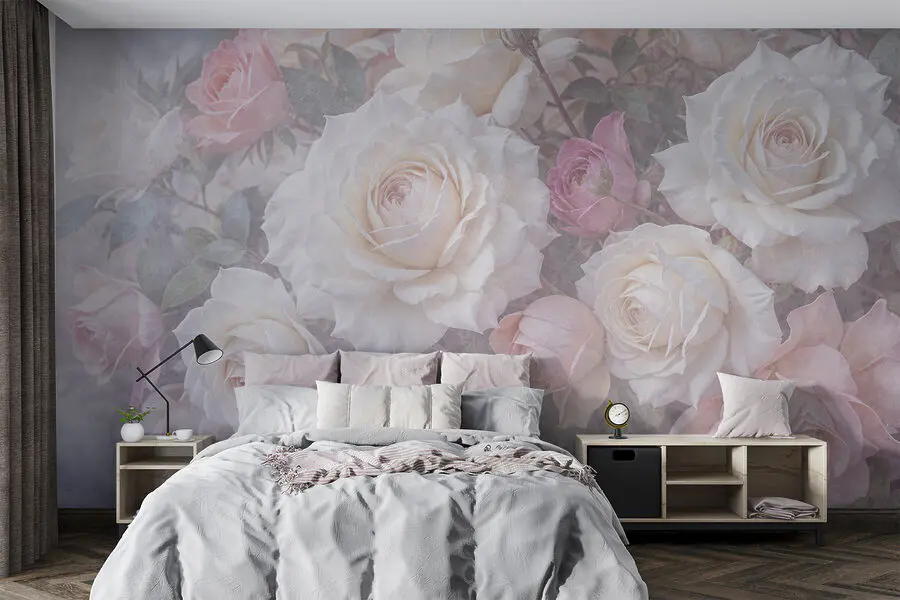 Stellen Sie sich vor: Ihr Zimmer ist in eine zarte Blüte aus weißen und rosa Rosen gehüllt. Es ist, als würden Sie einen Garten betreten, in dem die Luft ein wenig frischer ist und das Leben ein wenig langsamer zu verlaufen scheint. Diese Fototapete lädt zum Träumen von sonnigen Nachmittagen, Teepartys mit Freunden oder einfach einem gemütlichen Nickerchen unter einem Blumendach ein. Die sanften Farben und üppigen Blütenblätter eignen sich perfekt für Wohn- oder Schlafzimmer und machen jeden Raum einladender. Und wenn Sie einen schlechten Tag haben, schauen Sie sich einfach diese Rosen an – das hebt die Stimmung sofort! Wer hätte gedacht, dass sich Wände so gut anfühlen können?