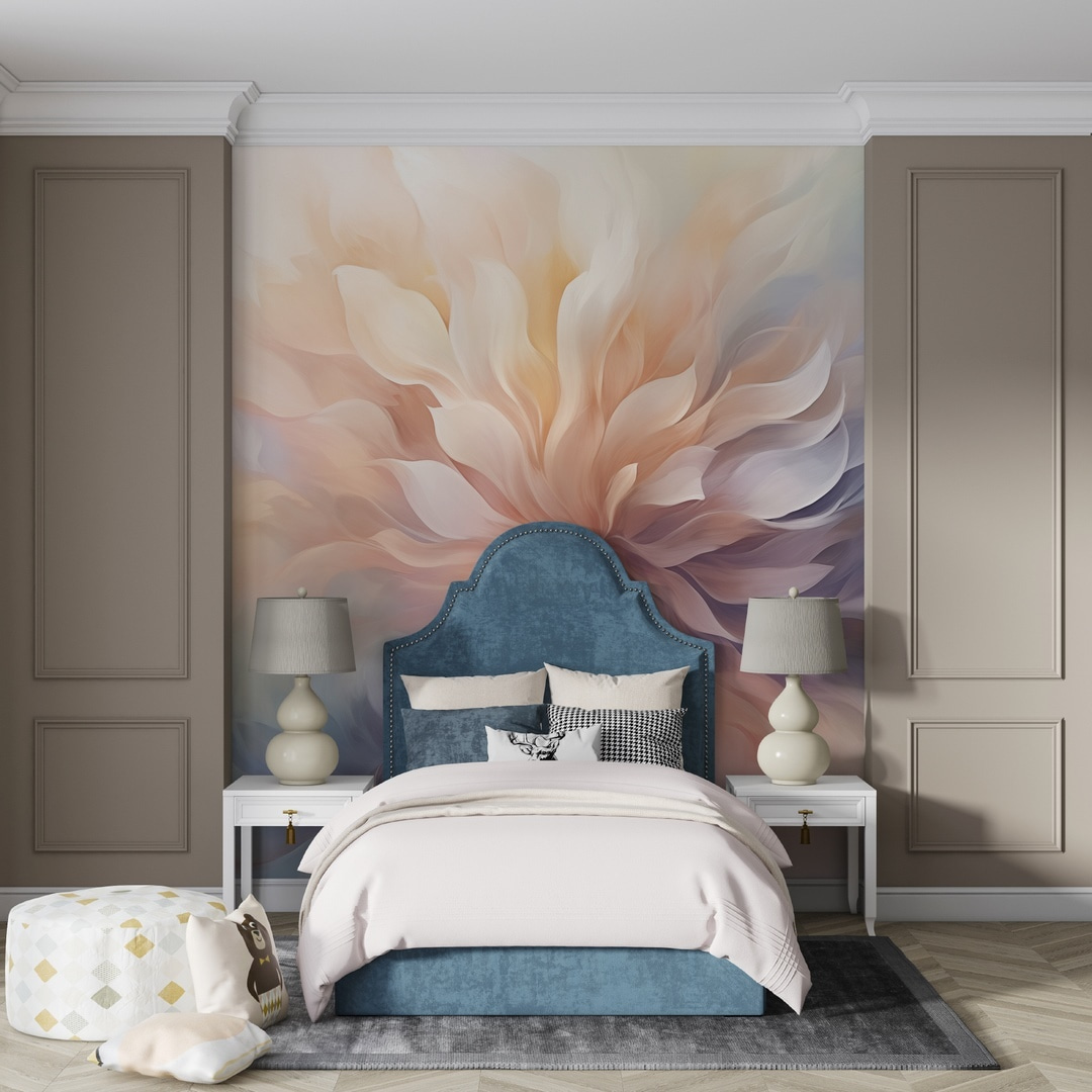 Mit dem Wandbild “Blooming Canvas of Soft Hues” verwandeln Sie jede Wand in einen ruhigen Zufluchtsort. Es ist wie ein sanfter Sonnenaufgang, der Ihren Raum umhüllt, mit sanften Pastelltönen, die miteinander tanzen – stellen Sie sich die Ruhe einer Blume vor, die sich an einem trägen Frühlingsmorgen öffnet. Dieses Wandbild eignet sich perfekt für Wohnräume oder gemütliche Ecken und lädt zu friedlichen Schwingungen und Tagträumen ein. Stellen Sie sich vor, wie Sie es sich mit einem Buch gemütlich machen oder einen Tee trinken und sich dabei völlig wohl fühlen. Die Farben sind beruhigend und doch lebendig; sie wirken Wunder, indem sie jeden Raum aufhellen, ohne ihn zu überwältigen. Es ist fast so, als würden Ihre Wände flüstern: “Atmen Sie tief durch, alles wird gut.” Schön, nicht wahr?