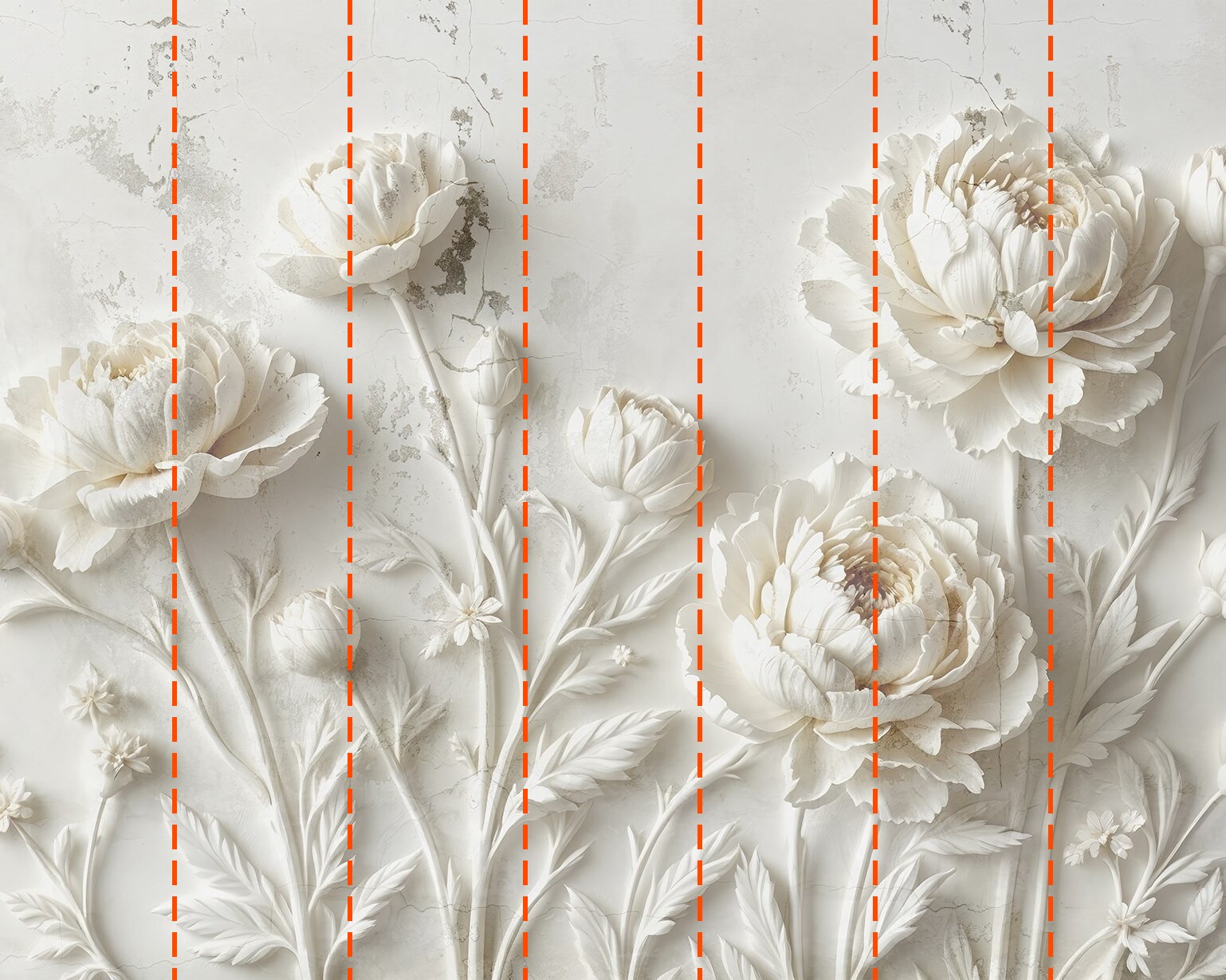Ihre Tapete wird nach den von Ihnen während des Bestellvorgangs angegebenen Maßen angefertigt. Die Leinwand wird in praktische Abschnitte von jeweils bis zu 50 cm Breite unterteilt.
