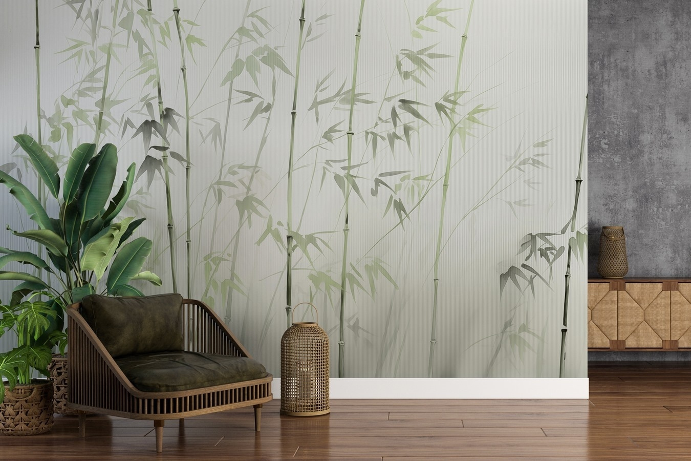 Verwandeln Sie Ihren Raum in eine ruhige Oase mit dieser schönen Fototapete, auf der Bambushalme mit weichen Blättern tanzen. Stellen Sie sich vor, Sie betreten einen Raum, der sich wie ein ruhiger japanischer Garten anfühlt, in dem der Stress einfach wegzuschmelzen scheint. Die zarten Grüntöne und die zarten Formen schaffen eine friedliche Atmosphäre, die sich perfekt für eine gemütliche Leseecke oder einen beruhigenden Rückzugsort im Schlafzimmer eignet. Es ist, als ob man sich ein kleines Stück Natur ins Haus holt – nur ohne den Schmutz! Jeder Blick löst ein beruhigendes Gefühl aus, das Sie daran erinnert, langsamer zu werden und die Schönheit der Umgebung zu schätzen. Glauben Sie uns, es ist schwer, nicht zu lächeln, wenn man von diesem schönen Grün umgeben ist!