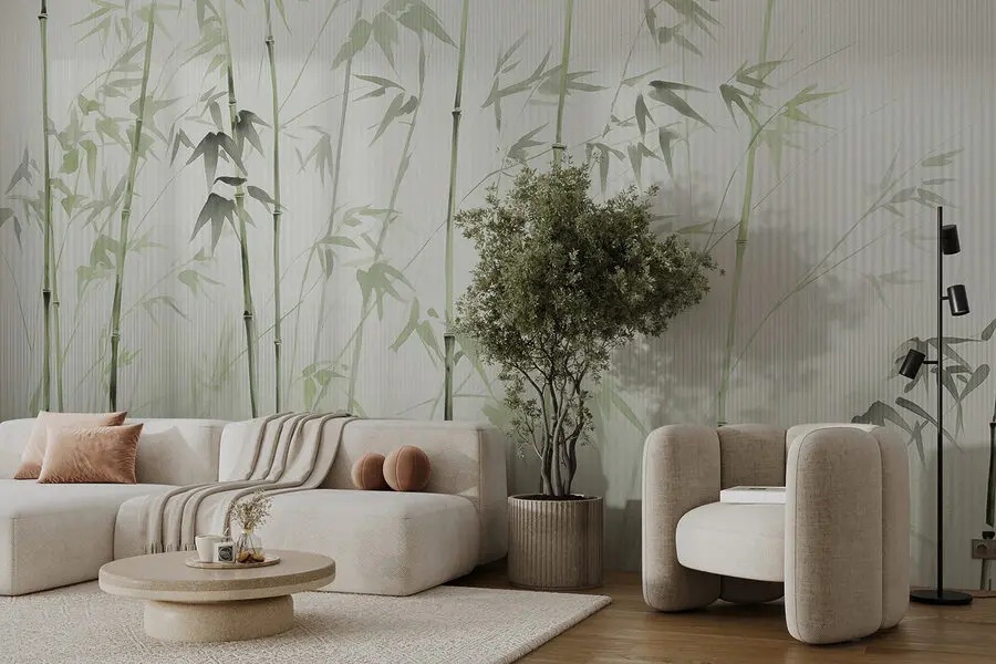Verwandeln Sie Ihren Raum in eine ruhige Oase mit dieser schönen Fototapete, auf der Bambushalme mit weichen Blättern tanzen. Stellen Sie sich vor, Sie betreten einen Raum, der sich wie ein ruhiger japanischer Garten anfühlt, in dem der Stress einfach wegzuschmelzen scheint. Die zarten Grüntöne und die zarten Formen schaffen eine friedliche Atmosphäre, die sich perfekt für eine gemütliche Leseecke oder einen beruhigenden Rückzugsort im Schlafzimmer eignet. Es ist, als ob man sich ein kleines Stück Natur ins Haus holt – nur ohne den Schmutz! Jeder Blick löst ein beruhigendes Gefühl aus, das Sie daran erinnert, langsamer zu werden und die Schönheit der Umgebung zu schätzen. Glauben Sie uns, es ist schwer, nicht zu lächeln, wenn man von diesem schönen Grün umgeben ist!