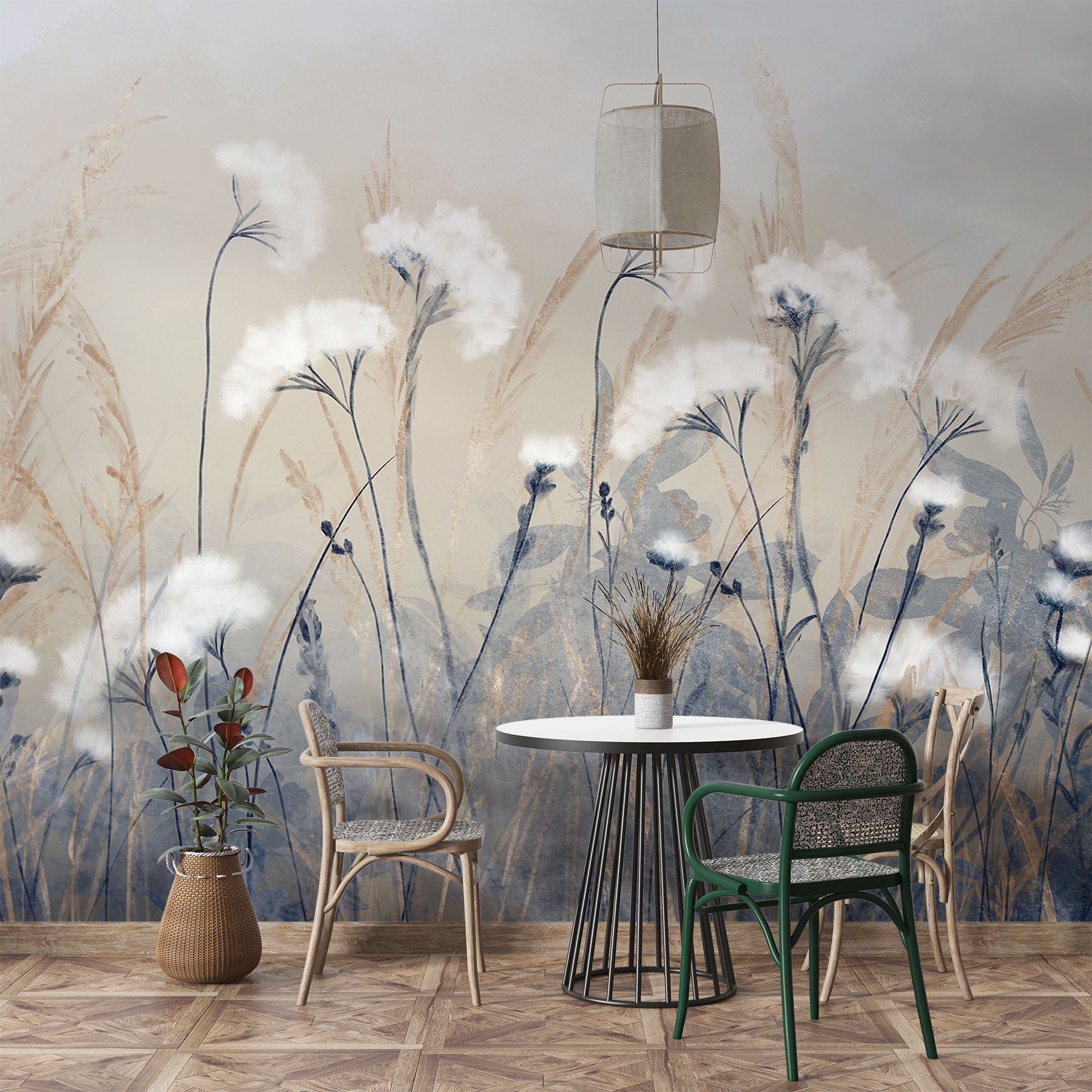 Verwandeln Sie Ihren Raum mit dieser atemberaubenden Fototapete, die eine skurrile Gruppe von Blumen in einem verträumten Feld zeigt. Es ist, als ob man sich die Natur ins Haus holt, ohne dass man von den Pollen niesen muss! Stellen Sie sich vor: Sie wachen auf, haben einen Kaffee in der Hand, und da sind sie – sanfte Blüten, die Ihnen süße Worte zuflüstern. Die sanften Aquarelltöne passen wunderbar zueinander und schaffen eine friedliche Atmosphäre, die jede Wand in einen ruhigen Rückzugsort verwandelt. Perfekt, um einen tristen Raum aufzuhellen oder die Stimmung für eine gemütliche Leseecke zu schaffen. Glauben Sie mir, es ist ein kleines Stückchen Ruhe, das Sie jedes Mal zum Lächeln bringen wird, wenn Sie daran vorbeigehen!