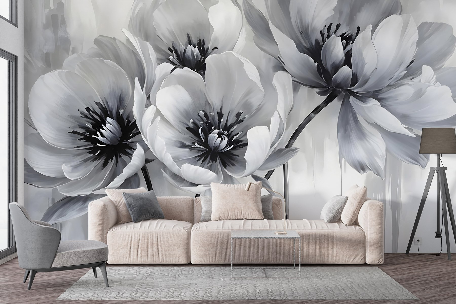 Verwandeln Sie Ihren Raum mit dieser atemberaubenden Fototapete, die eine anmutige Gruppe von Blumen auf einem weichen weißen Hintergrund zeigt. Stellen Sie sich vor, Sie betreten einen Raum, der sich wie eine ruhige Gartenoase anfühlt – hier brauchen Sie keinen grünen Daumen! Diese Pfingstrosen und Rosen in schickem Monochrom verleihen einen Hauch von Eleganz, ohne die Sinne zu überfordern. Sie eignen sich perfekt für Wohn- und Schlafzimmer oder sogar für die gemütliche Leseecke und laden einfach zum Entspannen ein. Die sanften Pinselstriche und zarten Details lassen jeden innehalten und bewundern. Warum nicht einen Hauch von Frische an Ihre Wände bringen? Vielleicht kommen Sie ins Träumen, während Sie einen Kaffee trinken, oder Sie planen eine Blumenparty für Ihre Freunde. Das ist wie ein Garten, der nie verwelkt!
