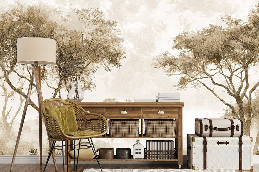 Verwandeln Sie Ihren Raum mit der bezaubernden Fototapete “Group of Trees in a Field”. Es ist nicht nur Kunst, sondern auch ein beruhigender Zufluchtsort direkt in Ihrem Zuhause. Stellen Sie sich vor, Sie wachen in einer ruhigen Landschaft auf, in der die Bäume im Wind Geschichten flüstern. Die weichen, erdigen Töne schaffen eine gemütliche Atmosphäre, die faule Nachmittage noch einladender macht. Stellen Sie sich eine Tasse Kaffee in der Hand vor, keine Eile, nur Sie und diese ruhige Szene. Perfekt für Naturliebhaber, verleiht es jedem Raum Wärme und Persönlichkeit. Nur zu, lassen Sie Ihre Wände ein wenig Magie atmen!
