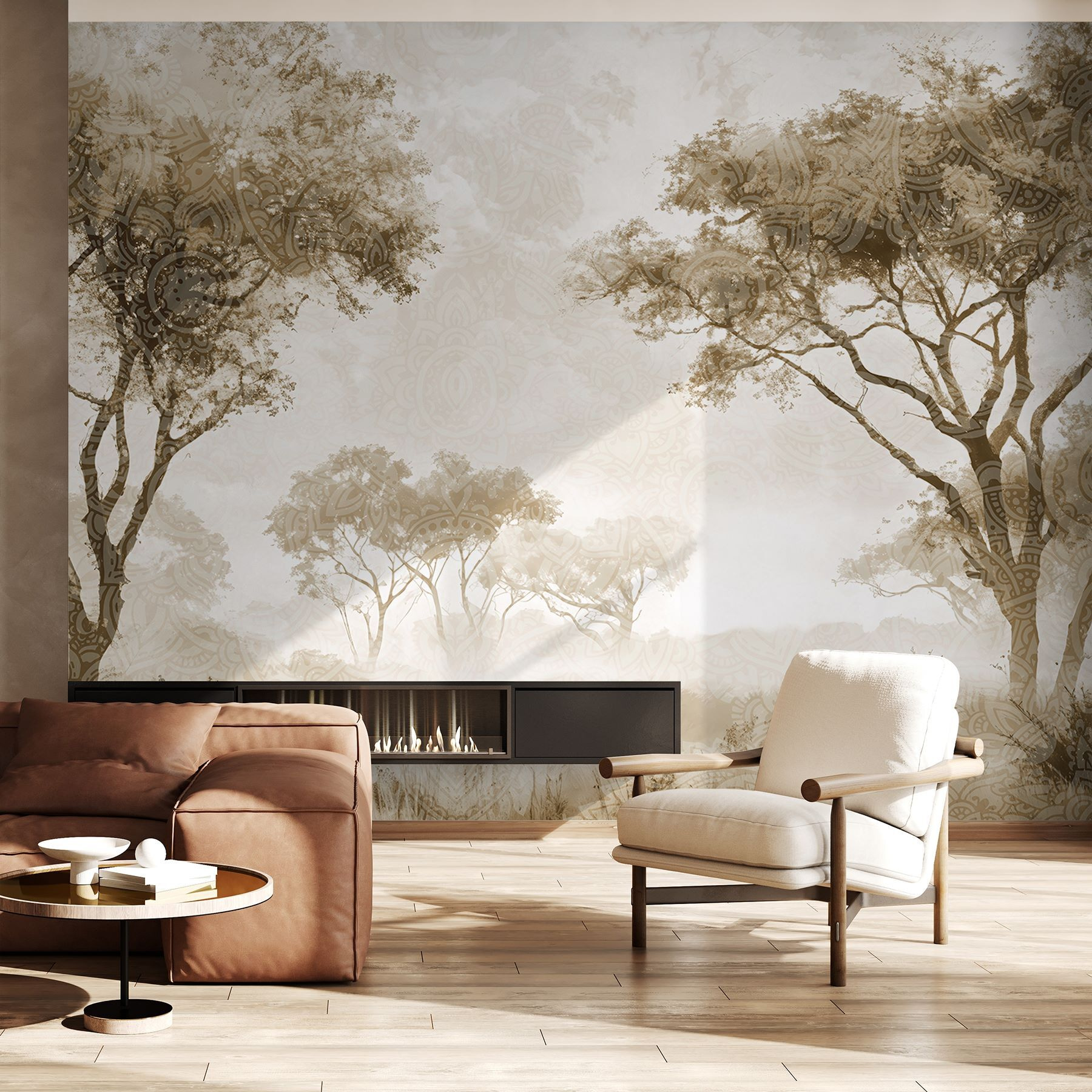 Verwandeln Sie Ihren Raum mit der bezaubernden Fototapete “Group of Trees in a Field”. Es ist nicht nur Kunst, sondern auch ein beruhigender Zufluchtsort direkt in Ihrem Zuhause. Stellen Sie sich vor, Sie wachen in einer ruhigen Landschaft auf, in der die Bäume im Wind Geschichten flüstern. Die weichen, erdigen Töne schaffen eine gemütliche Atmosphäre, die faule Nachmittage noch einladender macht. Stellen Sie sich eine Tasse Kaffee in der Hand vor, keine Eile, nur Sie und diese ruhige Szene. Perfekt für Naturliebhaber, verleiht es jedem Raum Wärme und Persönlichkeit. Nur zu, lassen Sie Ihre Wände ein wenig Magie atmen!