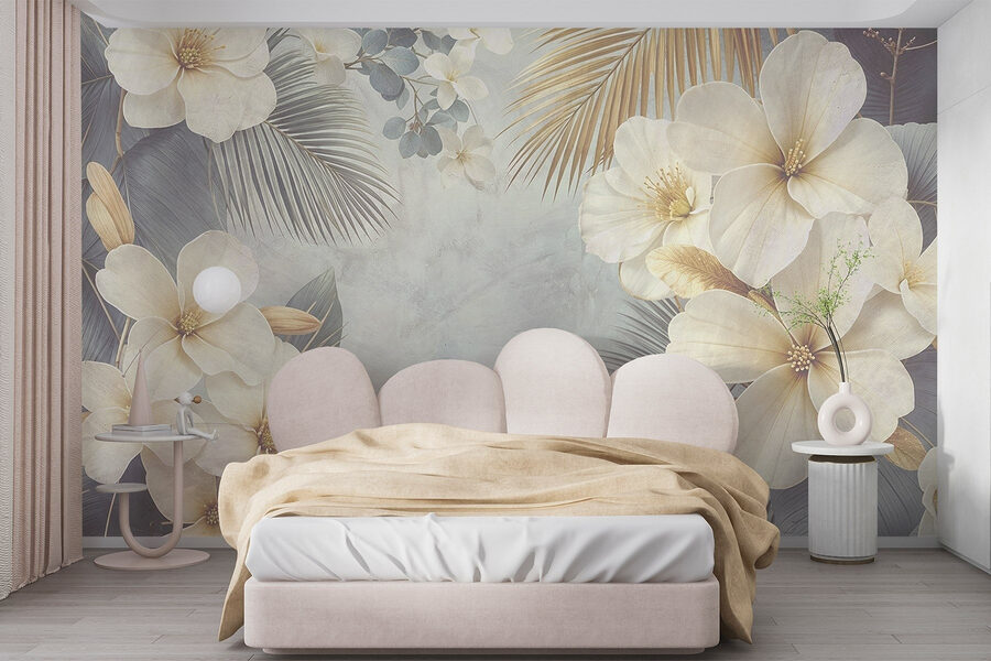 Verwandeln Sie Ihren Raum mit diesen herrlichen Wandbildern aus weißen Blumen und Blättern. Stellen Sie sich vor, dass Sie jedes Mal, wenn Sie den Raum betreten, einen erfrischenden Garten betreten. Die sanften Farbtöne und zarten Details zaubern ein Lächeln auf das Gesicht eines jeden, wie eine sanfte Frühlingsbrise. Es eignet sich perfekt für eine gemütliche Leseecke oder sogar als lebhafte Akzentwand in Ihrem Wohnzimmer – ein bequemer Sessel, eine dampfende Tasse Tee, und schon sind Sie fertig. Außerdem, wer liebt nicht eine gute Blumenstimmung? Sie werden das Gefühl haben, von der Natur umgeben zu sein, auch wenn Sie drinnen sind. Es ist fast so, als hätte man einen geheimen Garten – ohne Unkraut jäten zu müssen!