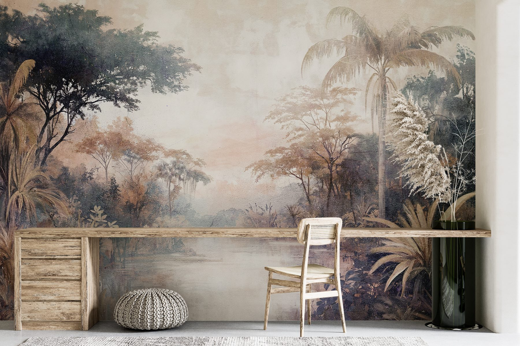 Verwandeln Sie Ihren Raum mit den “Wandbildern Fluss mit Bäumen und Pflanzen” in einen ruhigen Rückzugsort. Stellen Sie sich vor, Sie betreten eine traumhafte Landschaft, in der üppiges Grün auf einen ruhigen Fluss trifft – was für eine Stimmung! Dieses Wandbild ist nicht nur eine Wandverkleidung, es ist, als hätte man ein Stück Natur direkt zu Hause. Die sanften, erdigen Töne laden zur Ruhe ein und lassen jeden faulen Sonntag wie einen Mini-Urlaub erscheinen. Stellen Sie sich eine gemütliche Leseecke vor, dieses Wandbild als Hintergrund, eine warme Tasse Tee in der Hand. Plötzlich verblassen die Sorgen, und die Natur flüstert leise vor sich hin. Perfekt für alle, die sich nach einem Hauch von Tropen sehnen, ohne einen Sonnenbrand zu bekommen. Es geht nicht nur um Dekoration – es geht um das Gefühl!