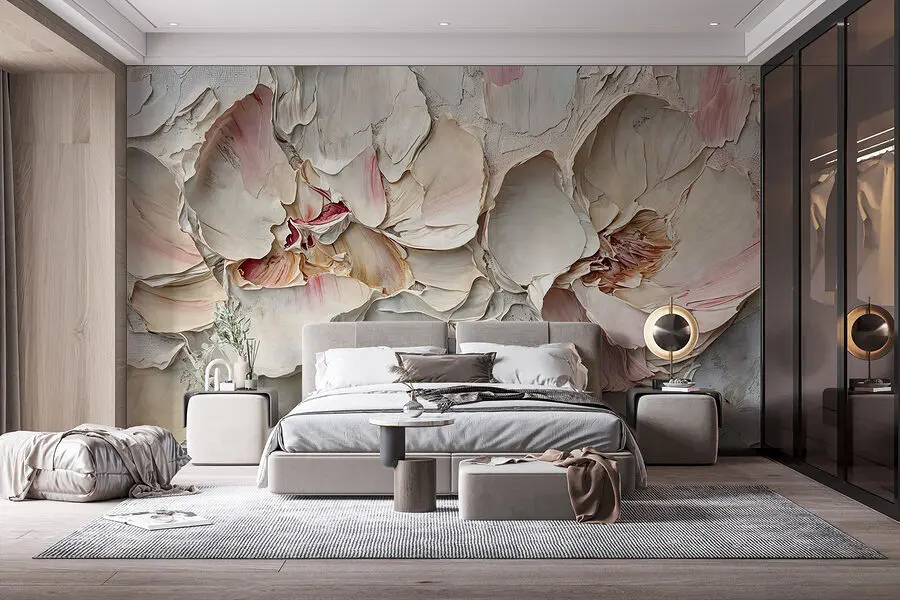 Verwandeln Sie Ihren Raum mit den Wandbildern Delicate Blooms of Textured Petals. Stellen Sie sich vor, dass Sie jedes Mal, wenn Sie den Raum betreten, einen heiteren Garten betreten. Diese weichen, wunderschön geschichteten Blütenblätter sorgen für einen Hauch von Natur, ohne die Niesanfälle, die mit echten Blumen einhergehen. Dieses Wandbild eignet sich perfekt für die Einrichtung einer gemütlichen Ecke und versprüht Ruhe und Charme. Es ist, als hätte man ein Kunstwerk, das atmet und schwingt und dazu einlädt, es zu berühren – auch wenn das nicht wirklich zu empfehlen ist. Perfekt, um zu träumen oder einen Tee zu trinken, während man von Eleganz umgeben ist. Er ist blumig, erdig und mühelos schön. Was könnte man mehr brauchen?