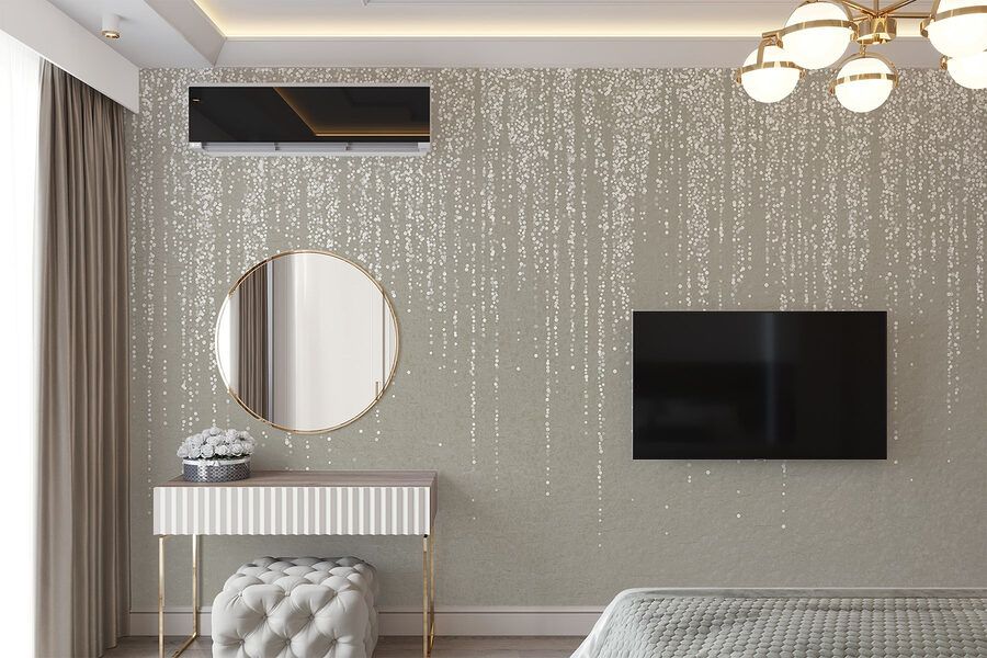 Die Vinylbeschichtung ist eine dünne PVC-Schicht, die auf ein Vlies aufgebracht wird. Das Vorhandensein von Vinyl macht die Tapete widerstandsfähig gegen Beschädigungen, ermöglicht eine einfache Reinigung mit einem feuchten Schwamm und verleiht der Oberfläche eine geprägte Textur, die an Leinenstoff erinnert.