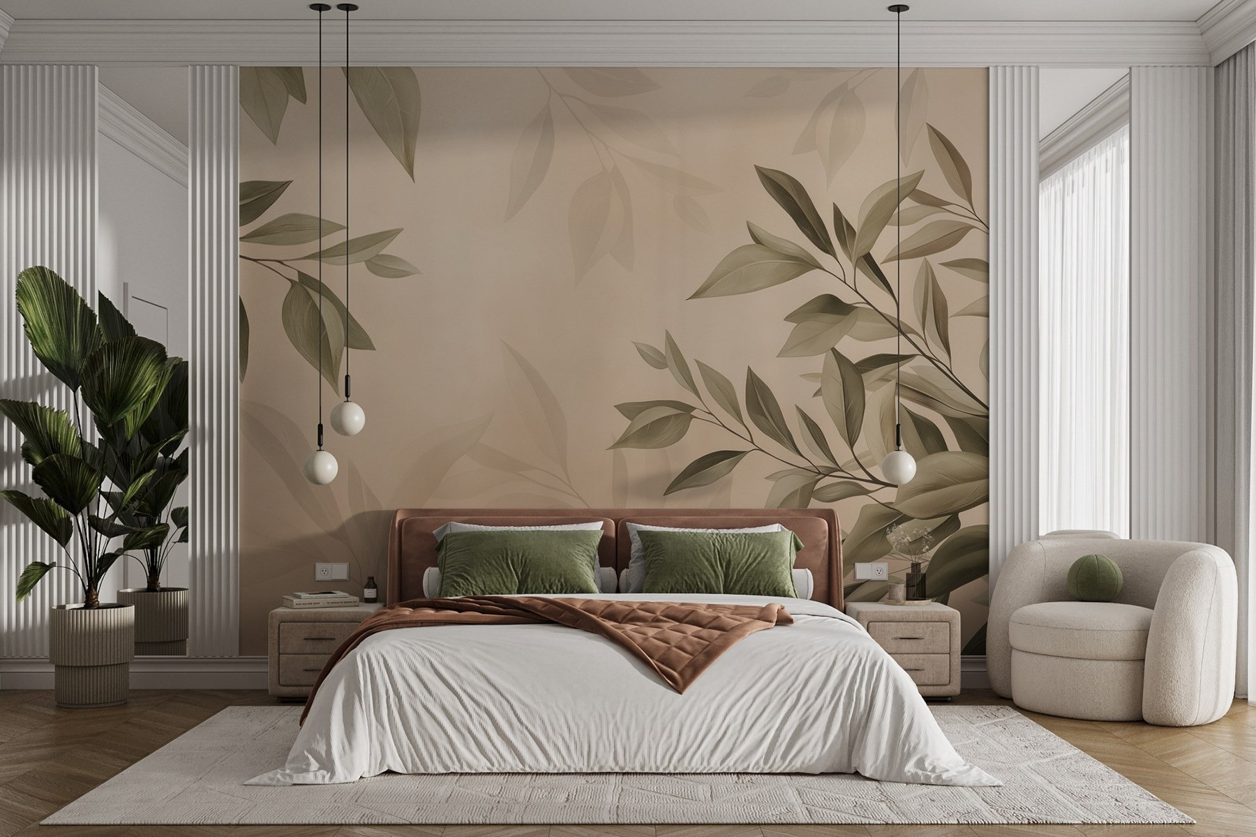 Verwandeln Sie Ihren Raum mit der ruhigen Schönheit von “Tranquil Leaves on a Soft Background”. Diese Fototapete fängt das sanfte Wiegen der Blätter ein, fast so, als würden sie in einer sanften Brise tanzen – natürlich ohne das Risiko von Pollenallergien! Die gedämpften Töne verleihen dem Bild einen gemütlichen Touch, der in jedem Raum eine beruhigende Atmosphäre schafft. Stellen Sie sich vor, Sie machen es sich mit einem Buch gemütlich und fühlen sich wie in einem kleinen Waldstück direkt in Ihrem Zuhause. Es ist die Art von Kunst, die Ruhe ausstrahlt und langweilige Wände der Vergangenheit angehören lässt. Perfekt für Naturliebhaber oder alle, die sich nach einem Hauch von Ruhe in ihrem Leben sehnen!