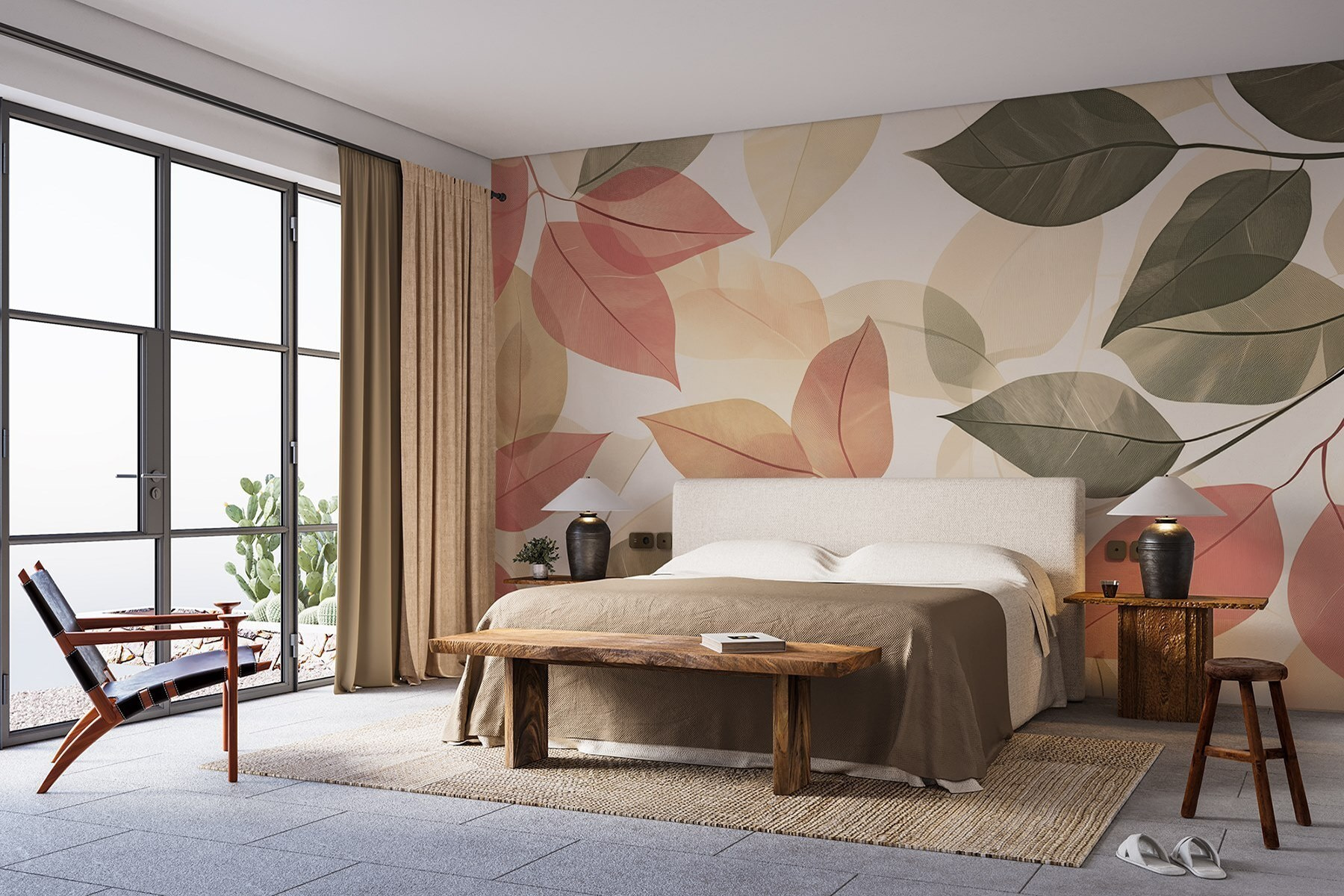 Verwandeln Sie eine langweilige Wand in einen beruhigenden Zufluchtsort mit dieser Fototapete “Soft Hues of Nature’s Beauty”. Stellen Sie sich vor: Sie betreten einen Raum und werden von einem sanften Blättertanz in gedämpften Rosatönen und Grüntönen begrüßt, der an die Gelassenheit eines Waldspaziergangs erinnert. Es ist, als ob man sich ein Stück Natur nach drinnen holt, ohne die lästigen Käfer. Fühlen Sie, wie Ihr Stress dahinschmilzt, wenn sich diese weichen Schatten um Sie legen und eine gemütliche, einladende Atmosphäre schaffen. Dieses Wandbild eignet sich perfekt für eine Leseecke oder ein ruhiges Schlafzimmer und dient nicht nur der Dekoration, sondern hilft Ihnen auch dabei, ein wenig leichter durchzuatmen. Stellen Sie sich vor, Sie machen es sich mit einer Tasse Tee gemütlich, umgeben von der sanften Berührung der Natur. Wer hätte gedacht, dass sich Wände so lebendig anfühlen können?