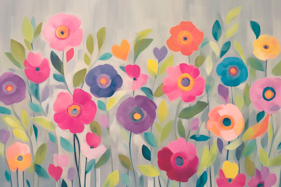 Verwandeln Sie jeden Raum mit dieser entzückenden Fototapete “Fototapeten Painting of Flowers and Leaves”. Stellen Sie sich vor, Sie wachen mit einem farbenfrohen Blütenteppich auf – jedes Blütenblatt zaubert ein Lächeln, wie ein fröhlicher Garten, der immer Saison hat! Die verspielte Mischung aus Rosa-, Violett- und Grüntönen sorgt für einen Hauch von Laune und verwandelt eine schlichte Wand in ein blühendes Wunderland. Es ist, als ob die Blumen sagen würden: “Hey! Bringt gute Laune mit!” Perfekt, um eine gemütliche Ecke zu verschönern, oder sogar die eine Wand, die ein wenig zu trist aussieht. Stellen Sie sich vor, Sie veranstalten eine Versammlung – alle bewundern Ihre Wandkunst, erzählen sich Geschichten und stellen sich vielleicht sogar ihre eigenen Gartenabenteuer vor. Dieses Wandbild dekoriert nicht nur, es bringt Wärme, Freude und einen Hauch von Natur in Ihr Zuhause. Ein echter Gesprächsanlass!