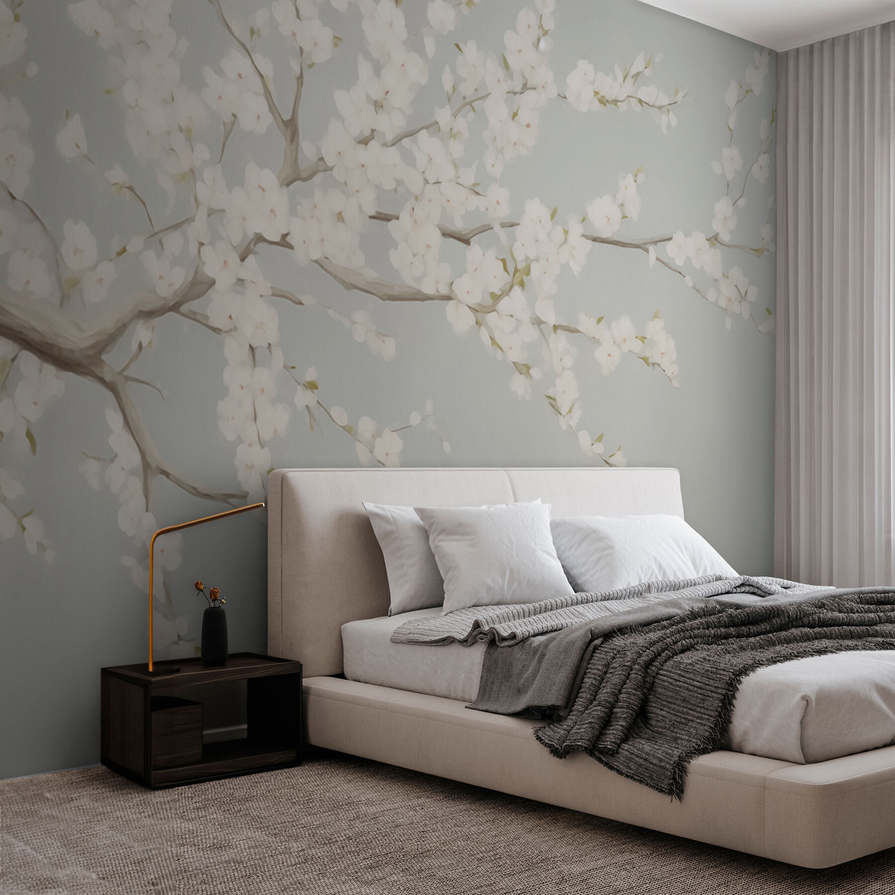 Verwandeln Sie jeden Raum mit dieser atemberaubenden Fototapete mit zarten weißen Blumen, die anmutig auf einem weichen grauen Hintergrund drapiert sind. Stellen Sie sich vor, Sie betreten Ihren eigenen kleinen japanischen Garten, in dem Ruhe und Schönheit aufeinandertreffen. Es ist, als hätten Sie ein Stück Natur direkt an Ihrer Wand! Diese Fototapete strahlt Eleganz aus und eignet sich perfekt, um in einem Schlafzimmer oder Wohnzimmer eine ruhige Atmosphäre zu schaffen. Stellen Sie sich vor, Sie schlürfen Tee, umgeben von Blütenblättern der Ruhe – ach, Glückseligkeit! Außerdem ist es ein einfacher Gesprächseinstieg: “Oh, du liebst auch die Natur?” Machen Sie sich bereit für ein paar gemütliche Momente!