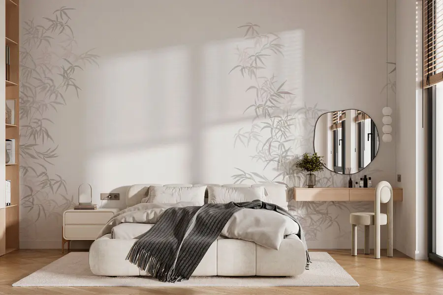 Verwandeln Sie jeden Raum in einen ruhigen Zufluchtsort mit dieser atemberaubenden Fototapete, auf der zarte Blätter vor einem weichen, weißen Hintergrund wirbeln. Stellen Sie sich vor, Sie betreten einen Raum, in dem die Hektik verblasst und durch das Flüstern der Natur ersetzt wird. Es ist, als ob man eine sanfte Gartenbrise ins Haus holt, nur ohne die lästigen Insekten. Diese Fototapete eignet sich perfekt für eine gemütliche Leseecke oder eine helle Küche und verleiht ihr einen Hauch von ruhiger Raffinesse. Freunde könnten einfach hereinspazieren und ausrufen: “Wow, sind wir in einem botanischen Garten?” Wer hätte gedacht, dass Wohnkultur so viel Freude bereiten kann? Bringen Sie mit der Schönheit der Natur Leben in Ihre Wände.