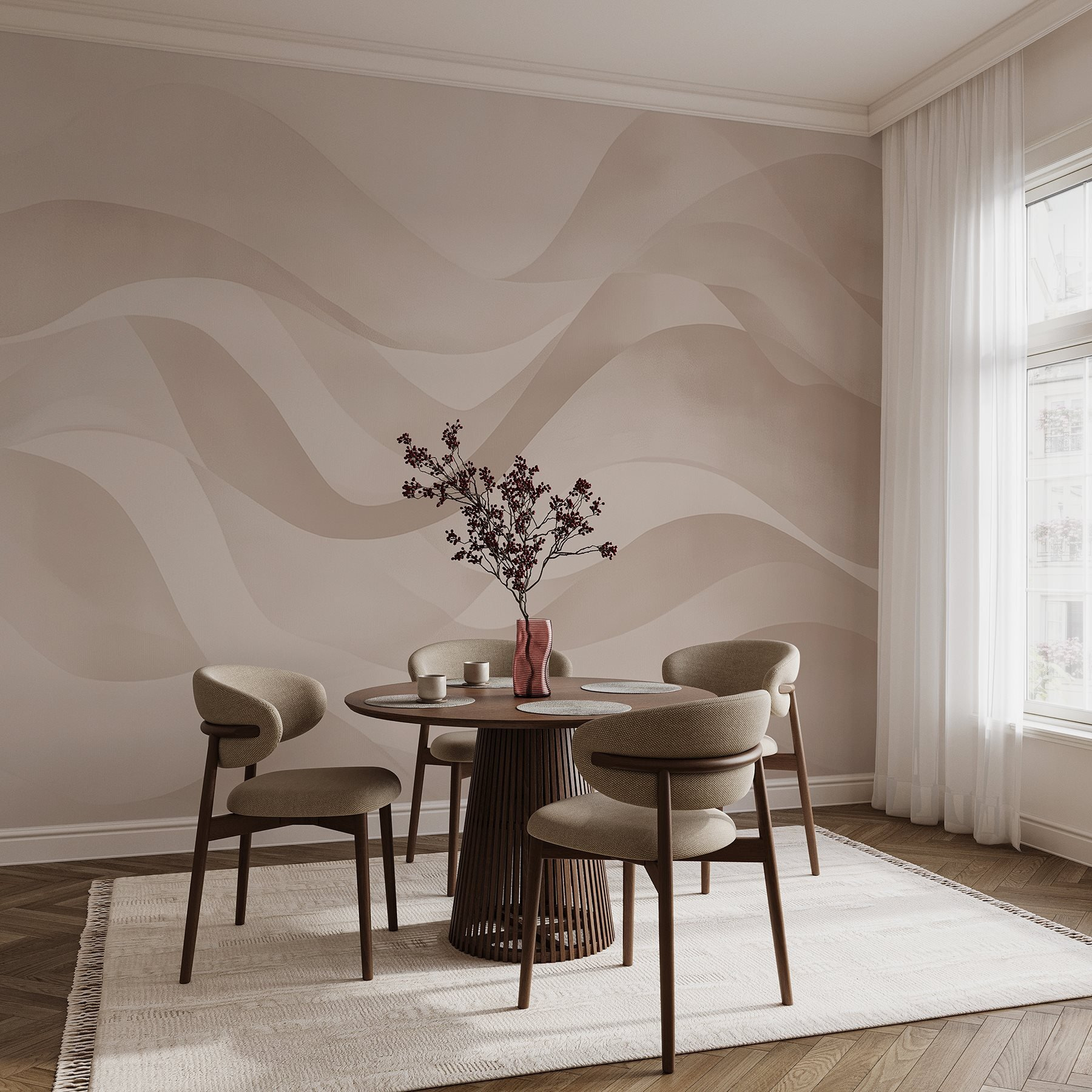 Stellen Sie sich vor, Sie betreten einen Raum, in dem die Wände Ruhe versprühen. Diese Fototapete mit ihren sanften weißen und rosafarbenen Wellen fühlt sich an wie eine leichte Brise an einem Sonntagmorgen. Die beruhigenden Farbtöne schaffen eine heitere Kulisse, perfekt zum Entspannen nach einem langen Tag oder für Gespräche mit Freunden. Können Sie sich das nicht auch vorstellen? Vielleicht mit einem gemütlichen Sessel und einer dampfenden Tasse Tee in der Nähe, oder vielleicht mit einer kleinen Galerie gerahmter Erinnerungen, die die schönsten Momente des Lebens zeigen. Diese Fototapete dekoriert nicht nur, sie bringt auch eine Art von Ruhe, die Sie wie eine warme Umarmung umgibt. Es ist ideal für jeden Raum, der sich nach einem Hauch von Eleganz sehnt, und verwandelt gewöhnliche Wände in eine verträumte Welt. Perfekt für die Momente, in denen man sich daran erinnern muss, durchzuatmen und die kleinen Freuden des Lebens zu genießen!