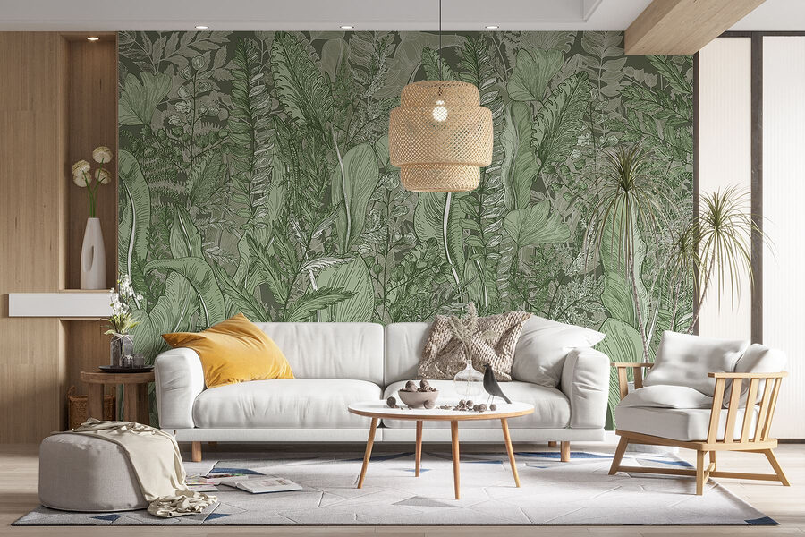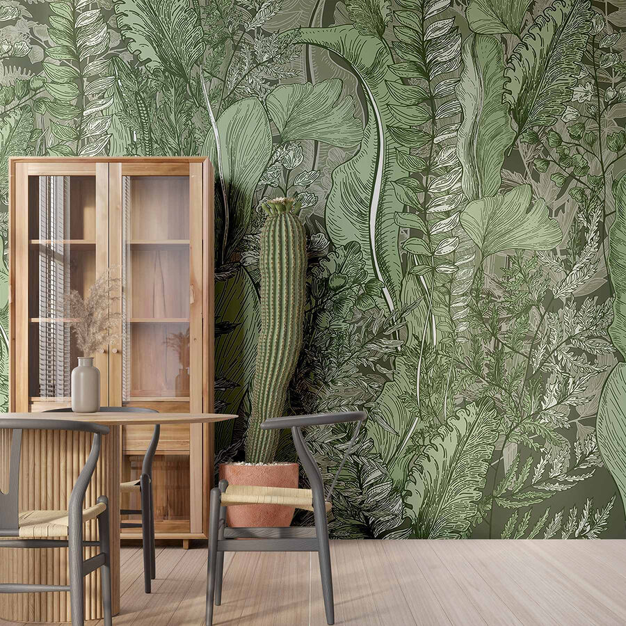 Verwandeln Sie jeden Raum in eine heitere Oase mit der Fototapete “Lush Greenery”. Es ist, als ob Sie einen Spaziergang durch einen lebendigen Wald machen, ohne Ihr Zimmer zu verlassen! Mit seinen verschlungenen Blättern und zarten Farnen bringt dieses Kunstwerk einen Hauch von Natur in Ihr Zimmer. Stellen Sie sich vor, wie Sie es sich mit einem guten Buch gemütlich machen, umgeben von diesem beruhigenden Grün – perfekt, um zu träumen oder sich nach einem langen Tag zu entspannen. Außerdem ist es eine schicke Lösung für alle, denen es schwerfällt, Zimmerpflanzen am Leben zu erhalten (kein Urteil!). Lassen Sie die beruhigenden Töne Leben in Ihre Wände bringen und Ihr Dekorationsspiel mühelos aufwerten.