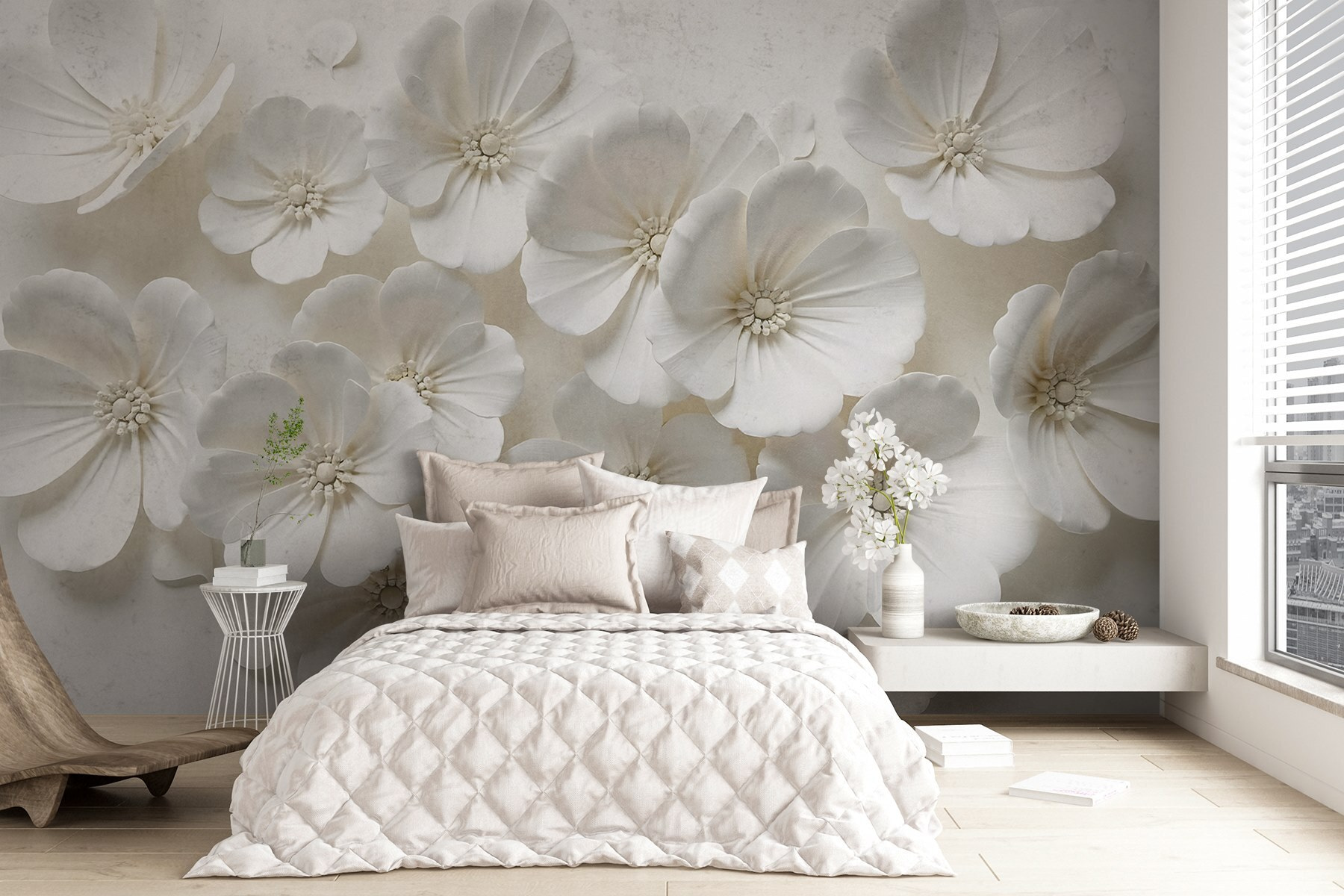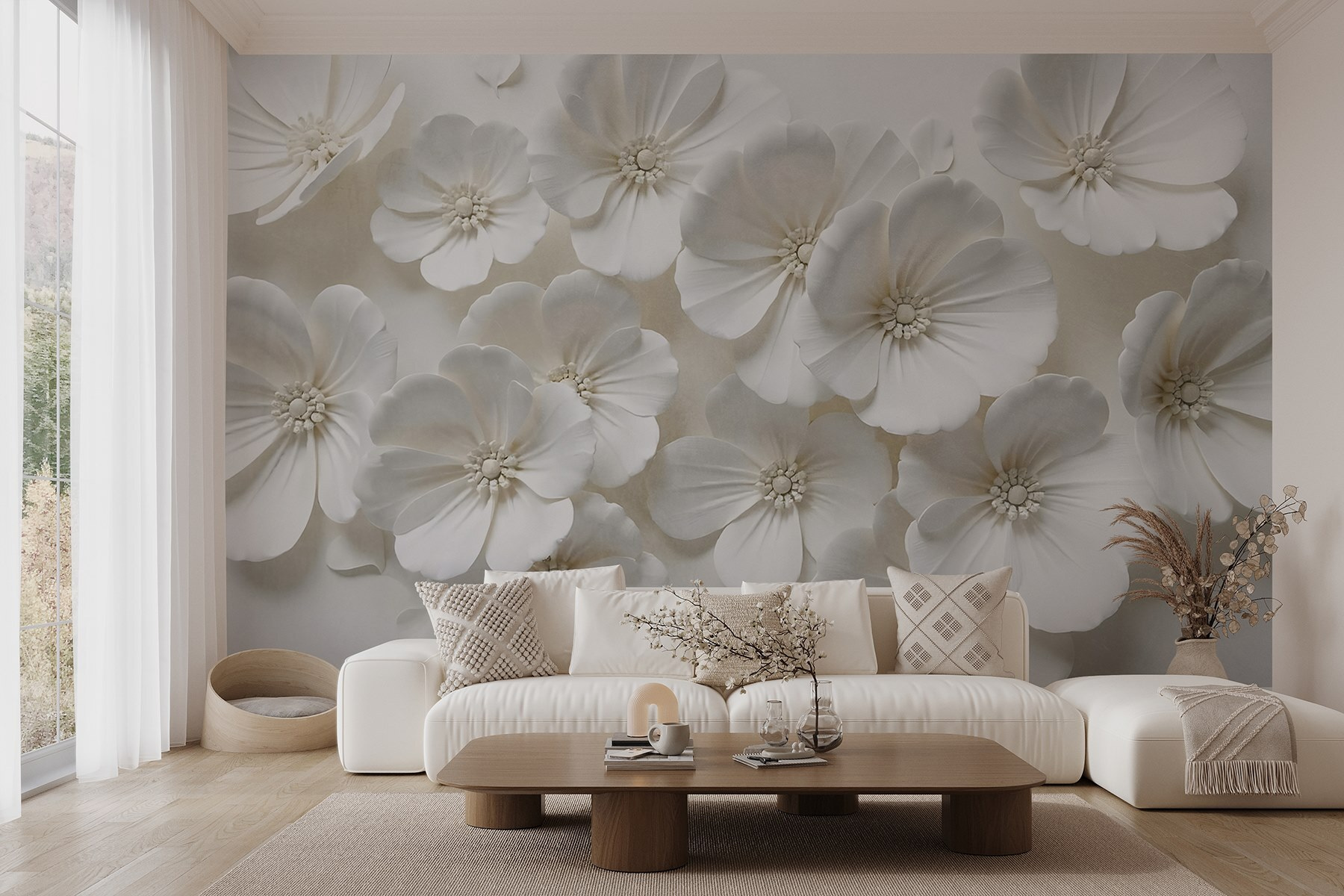 Verwandeln Sie Ihren Raum in einen heiteren Zufluchtsort mit dieser atemberaubenden Wandtapete, die eine entzückende Gruppe weißer Blumen zeigt. Es ist, als würde man einen Hauch von frischer Luft ins Haus holen – natürlich ohne Pollen! Stellen Sie sich vor, Sie wachen jeden Morgen mit einer sanften Blüte auf, ohne dass Sie sie gießen müssen!