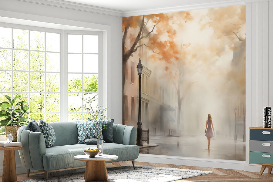 Stellen Sie sich vor: eine Frau schlendert durch eine neblige Straße, eingehüllt in die warmen Farben des Herbstes. Diese Fototapete ist nicht nur Kunst, sondern auch ein Tor zu einer verträumten Flucht. Stellen Sie sich vor, es erhellt Ihr Wohnzimmer oder Ihr gemütliches Schlafzimmer und zieht jeden an, der einen Blick darauf wirft. Der Nebel schafft eine geheimnisvolle Atmosphäre, die jeden Blick wie ein Abenteuer erscheinen lässt. Und diese nostalgische Stimmung? Perfekt für Abende, an denen Sie in Erinnerungen schwelgen oder Ihre nächste Flucht planen. Es ist, als würde man sich ein Stück Stadtleben nach Hause holen, einen verträumten Schritt nach dem anderen – was für ein Gefühl!