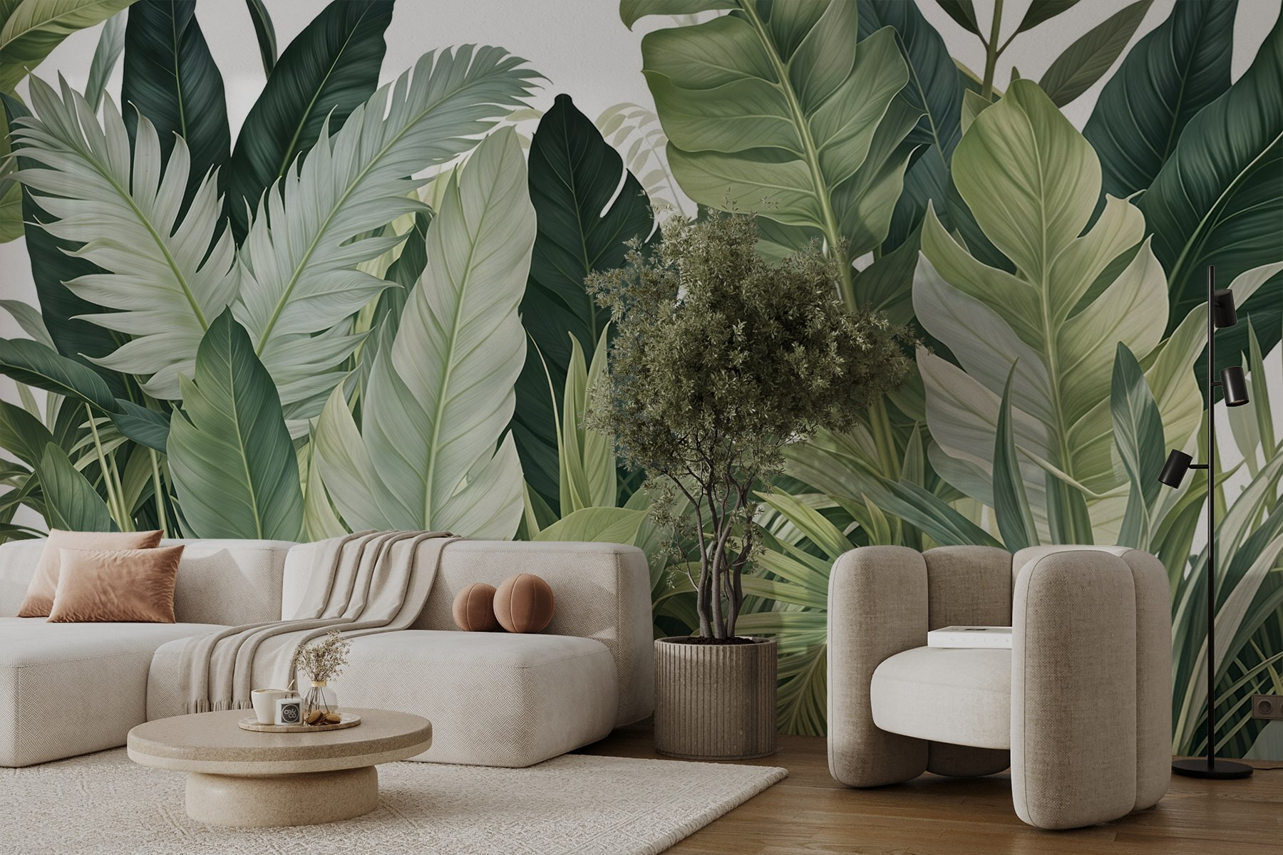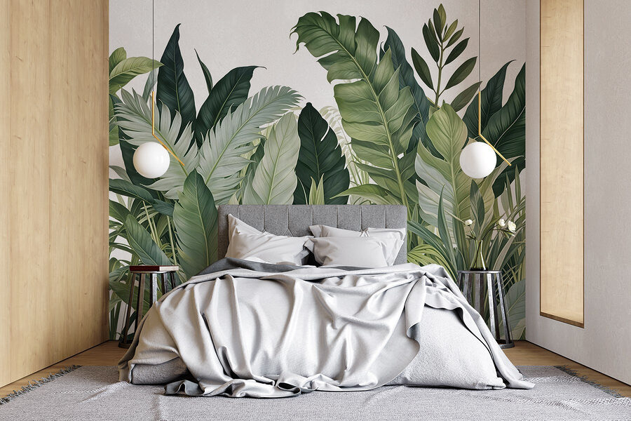 Verwandeln Sie Ihren Raum in eine üppige Oase mit der Fototapete “Group of Green Leaves”! Stellen Sie sich vor, Sie betreten einen Raum, in dem lebhaftes Grün Sie wie eine warme Umarmung der Natur umhüllt. Diese wunderschön gestalteten Blätter versprühen eine tropische Atmosphäre, die jede triste Ecke in ein Dschungelparadies verwandeln kann. Die verschiedenen Grüntöne erzeugen eine beruhigende Atmosphäre, die perfekt ist, um sich nach einem langen Tag zu entspannen. Außerdem ist kein Gießen erforderlich! Es ist einfach die Schönheit der Natur, ohne dass man sie pflegen muss. Stellen Sie sich vor, Sie holen sich ein Stückchen Natur ins Haus, ohne Ungeziefer. Ideal für Wohn- und Schlafzimmer oder sogar für eine gemütliche Ecke, in der man Kaffee schlürfen, träumen und so tun kann, als wäre man an einem sonnenverwöhnten Strand – ohne Sand in den Schuhen.