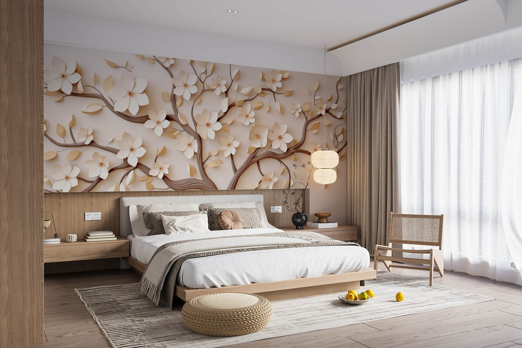 Verwandeln Sie jeden Raum mit dieser bezaubernden Fototapete, die einen schönen, mit Blumen geschmückten Baum zeigt. Stellen Sie sich vor, dass Sie direkt von Ihrem Wohnzimmer aus in einen ruhigen japanischen Garten treten. Die sanften Farben und anmutigen Linien laden zu einer beruhigenden Atmosphäre ein, die dazu einlädt, Tee zu trinken und stundenlang zu träumen. Er eignet sich perfekt für eine gemütliche Sitzecke oder einen Essbereich und bringt einen Hauch von Natur mit, ohne die lästigen Pollen. Egal, ob Sie Freunde einladen oder einen ruhigen Abend allein verbringen, dieses Wandbild sorgt für Freude und Unterhaltung. Es ist, als würde man eine sanfte Brise in sein Zuhause einladen – wer würde sich das nicht wünschen?