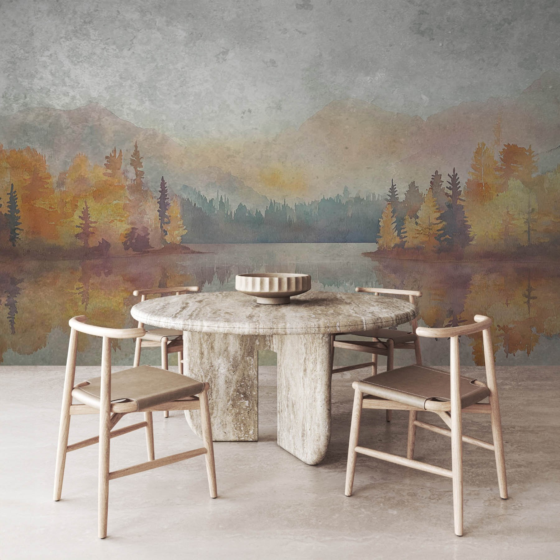 Verwandeln Sie Ihren Raum in einen gemütlichen Zufluchtsort mit dieser atemberaubenden Aquarellwandmalerei eines ruhigen Sees, der von üppigen Bäumen und majestätischen Bergen umgeben ist. Stellen Sie sich vor, Sie lassen sich mit einem Kaffee in der Hand treiben, während die warmen Farben und die sanften Reflexionen Sie an Ihren Lieblingsplatz im Freien entführen. Es ist, als würde man sich ein kleines Stück Natur direkt in die eigenen vier Wände holen. Dieses Wandbild eignet sich perfekt für ein Wohnzimmer oder ein ruhiges Büro und verleiht mit seinen subtilen Farbtönen Tiefe und Charme. Es ist nicht nur Dekoration, sondern auch eine tägliche Erinnerung daran, durchzuatmen, zu entspannen und vielleicht sogar ein wenig zu träumen. Wer würde sich nicht einen Hauch von Ruhe in seinem Leben wünschen?