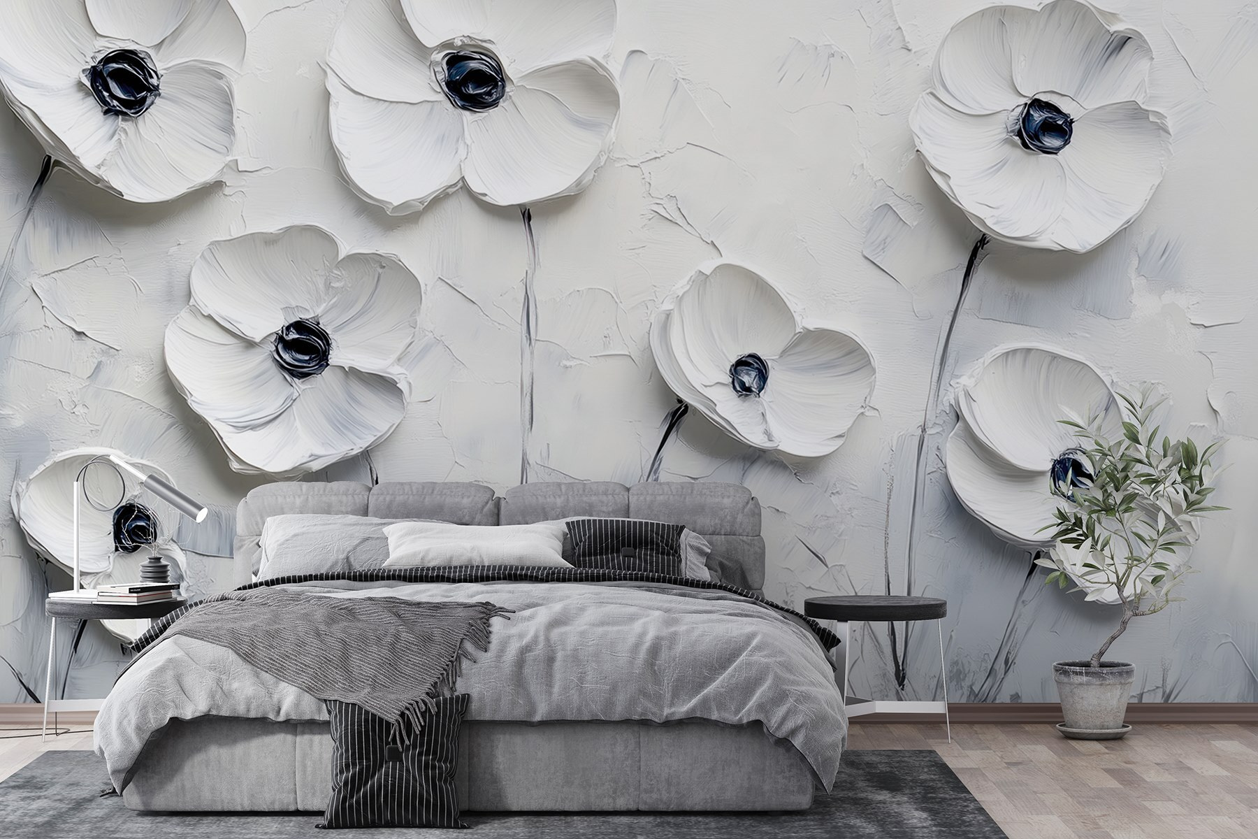 Verändern Sie jeden Raum mit dieser atemberaubenden Fototapete, die elegante weiße Blumen zeigt, die direkt von der Wand zu blühen scheinen. Stellen Sie sich vor, Sie betreten Ihren Raum und werden von diesen Pfingstrosen- und Rosenschönheiten begrüßt, die sofort Ihre Stimmung heben. Die weiche Struktur und die sanften Farben schaffen eine heitere Kulisse, die perfekt ist, um an einem faulen Morgen Kaffee zu trinken oder Freunde zum Abendessen einzuladen. Es ist, als ob man sich einen Garten ins Haus holt, nur ohne die lästigen Pollen! Diese Fototapete verleiht jeder Ecke einen Hauch von Charme und Laune und lässt jeden Blick wie eine kleine Flucht in die Natur erscheinen. Also, los geht’s – lass deine Wände singen!