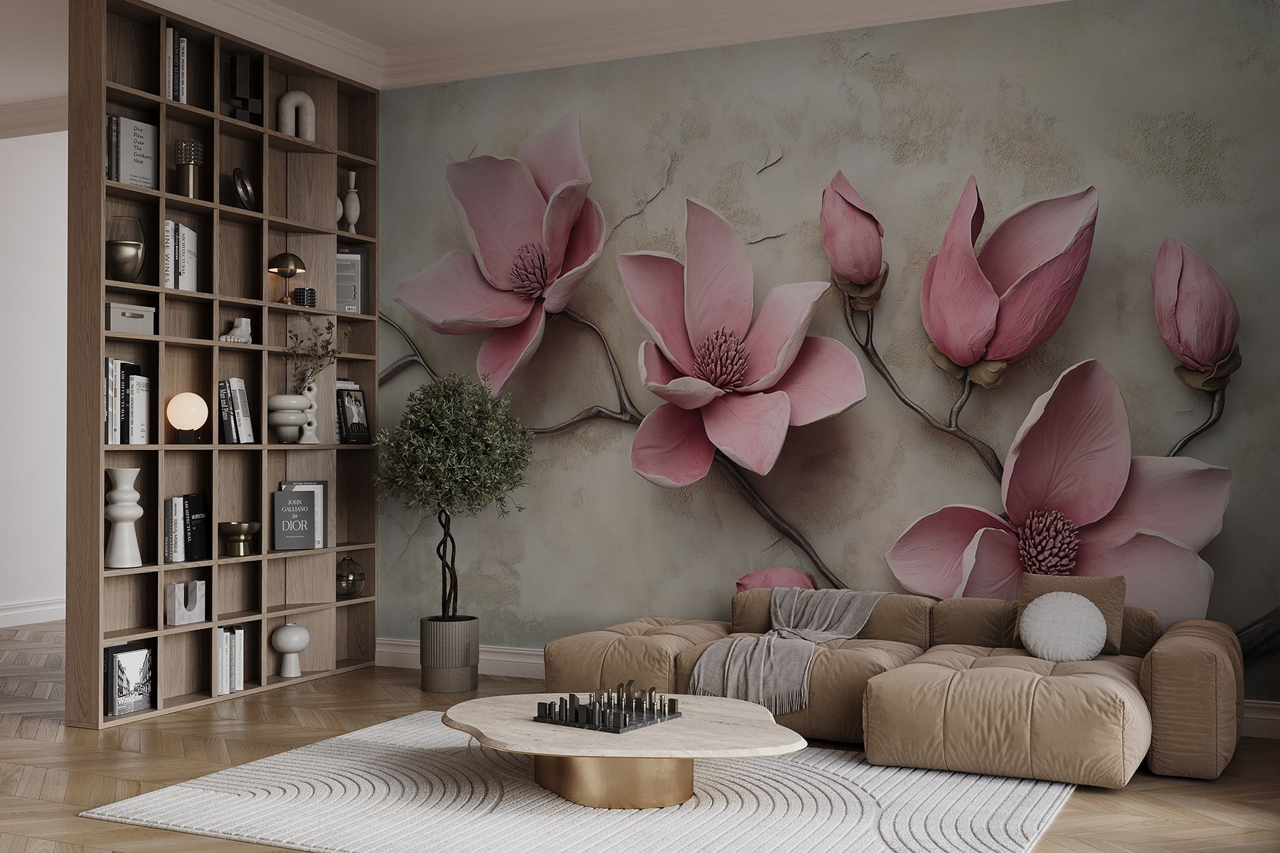Verwandeln Sie Ihren Raum in eine heitere Oase mit dieser atemberaubenden Fototapete mit rosa Blumen auf einem weichen, weißen Hintergrund. Stellen Sie sich vor, Sie betreten einen friedlichen japanischen Garten, in dem jeder Blick wie ein frischer Windhauch wirkt. Die zarten Pfingstrosen und Rosen sprühen vor Leben und bringen Wärme und Freude in Ihr Zuhause. Es ist, als ob man sich den Frühling ins Haus holt – ohne niesende Allergiker. Das anmutige Design dieses Wandbildes eignet sich perfekt für eine gemütliche Ecke oder sogar über einem schönen Couchtisch und sorgt für eine fröhliche Stimmung, die es zu einem reizvollen Hintergrund für jedes Treffen macht. Vertrauen Sie darauf, dass diese Dekoration Ihre Gäste verzaubern und Ihre Stimmung täglich aufhellen wird!