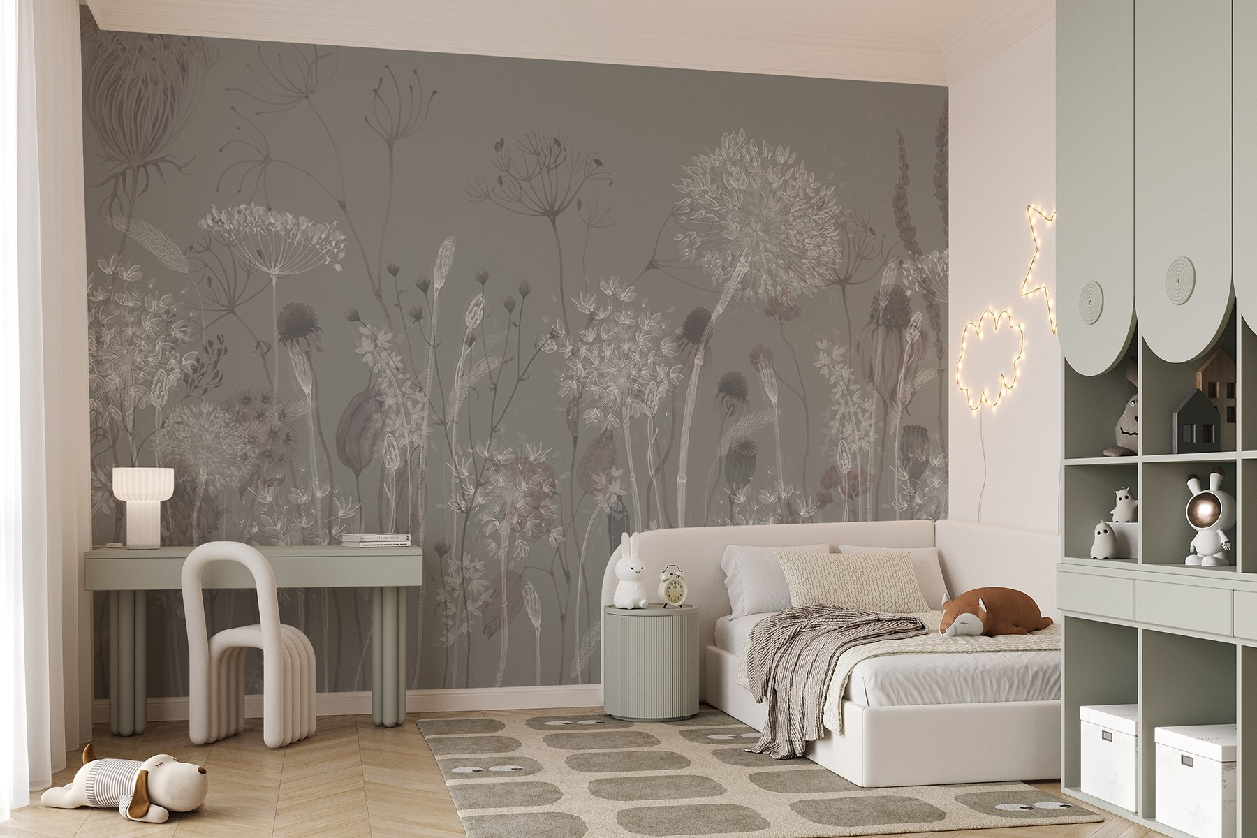 Verwandeln Sie Ihren Raum mit der Fototapete “Delicate Floral Harmony in Muted Tones” in eine verträumte Oase. Stellen Sie sich vor: Sie betreten einen gemütlichen Raum, in dem zarte Blumen über die Wand tanzen und Geheimnisse der Ruhe flüstern. Diese gedämpften Töne? Sie sind wie eine warme Umarmung für die Augen – perfekt, um eine heitere Stimmung zu erzeugen. Stellen Sie sich vor, Sie schlürfen einen Tee, eingewickelt in Ihre Lieblingsdecke, während diese zarten Blüten Sie daran erinnern, dass die Schönheit der Natur auch in Ihrem Zuhause wohnen kann. Es ist ein Hauch von Laune und Ruhe, der jede triste Wand in einen Garten der Fantasie verwandelt. Wer hätte gedacht, dass Blütenträume so schick sein können?