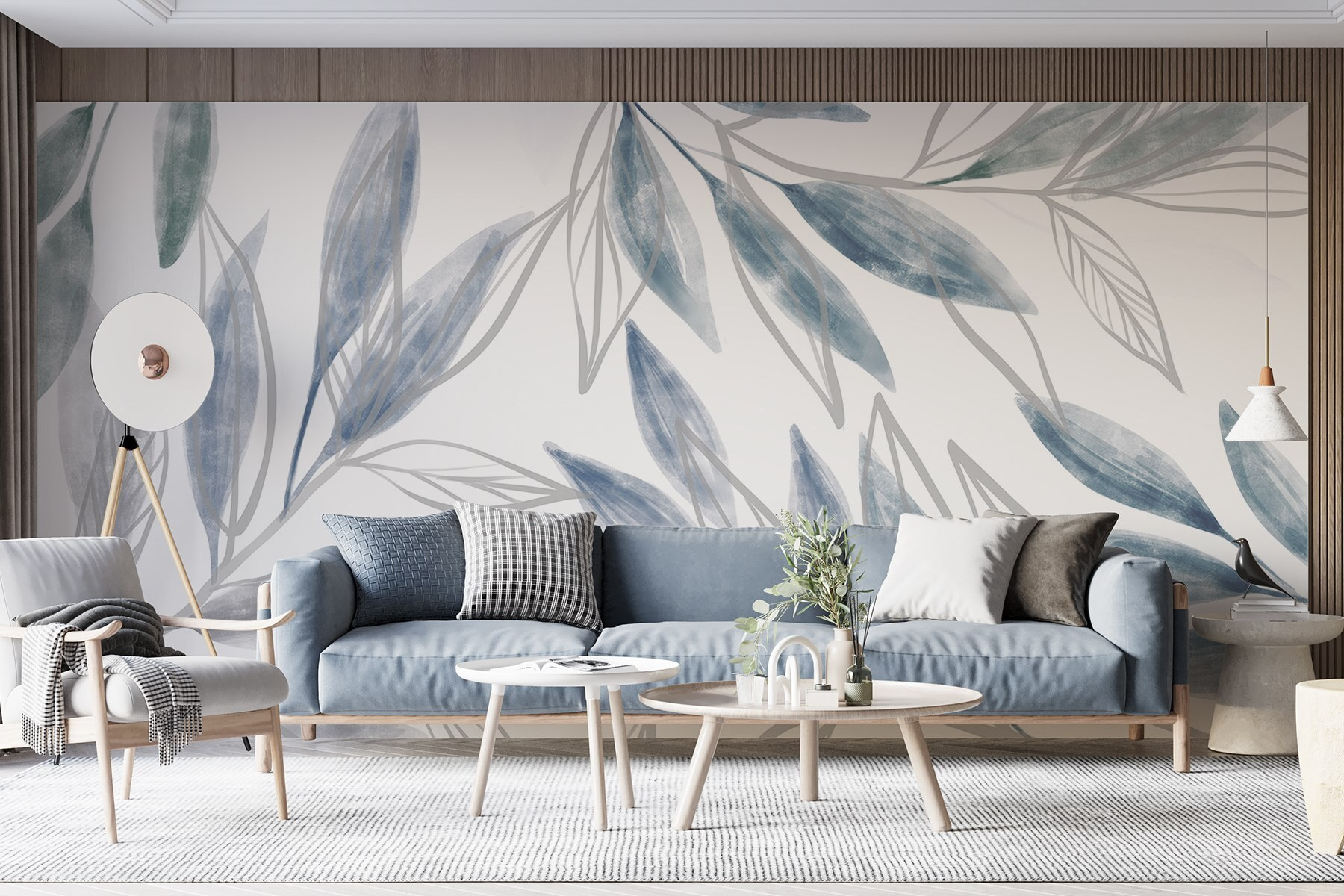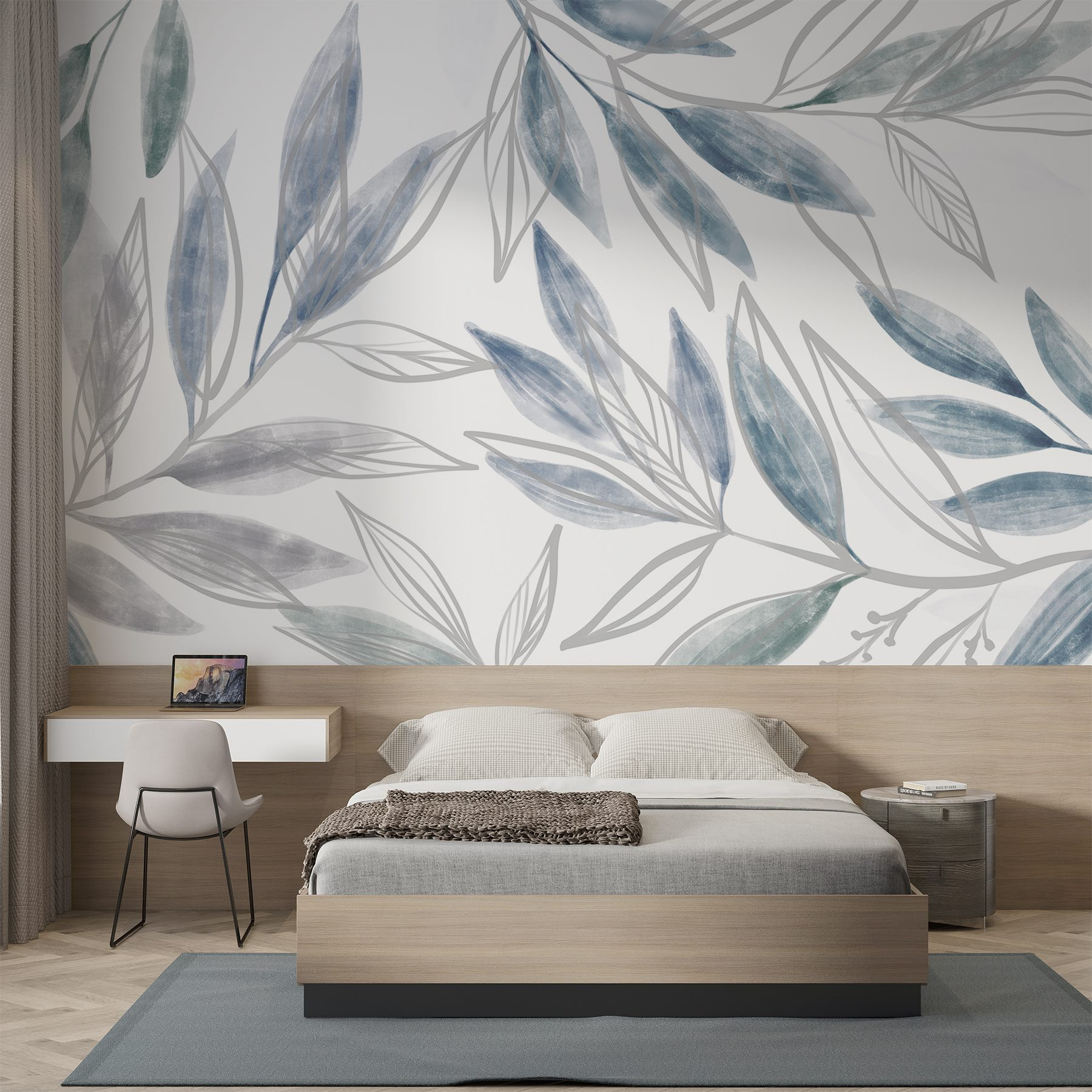 Verwandeln Sie Ihren Raum in einen ruhigen Rückzugsort mit der Fototapete “Natürliche Eleganz in sanften Tönen”. Stellen Sie sich vor, Sie wachen mit der sanften Umarmung von grünen Blättern und sanften Blautönen auf, als ob die Natur direkt in Ihr Haus gekommen wäre. Diese Fototapete schmückt nicht nur eine Wand – sie bringt einen Hauch von frischer Luft in Ihr Zuhause und schafft eine friedliche Atmosphäre, die Ihnen zuflüstert: “Hey, nimm dir einen Moment Zeit zum Entspannen.”