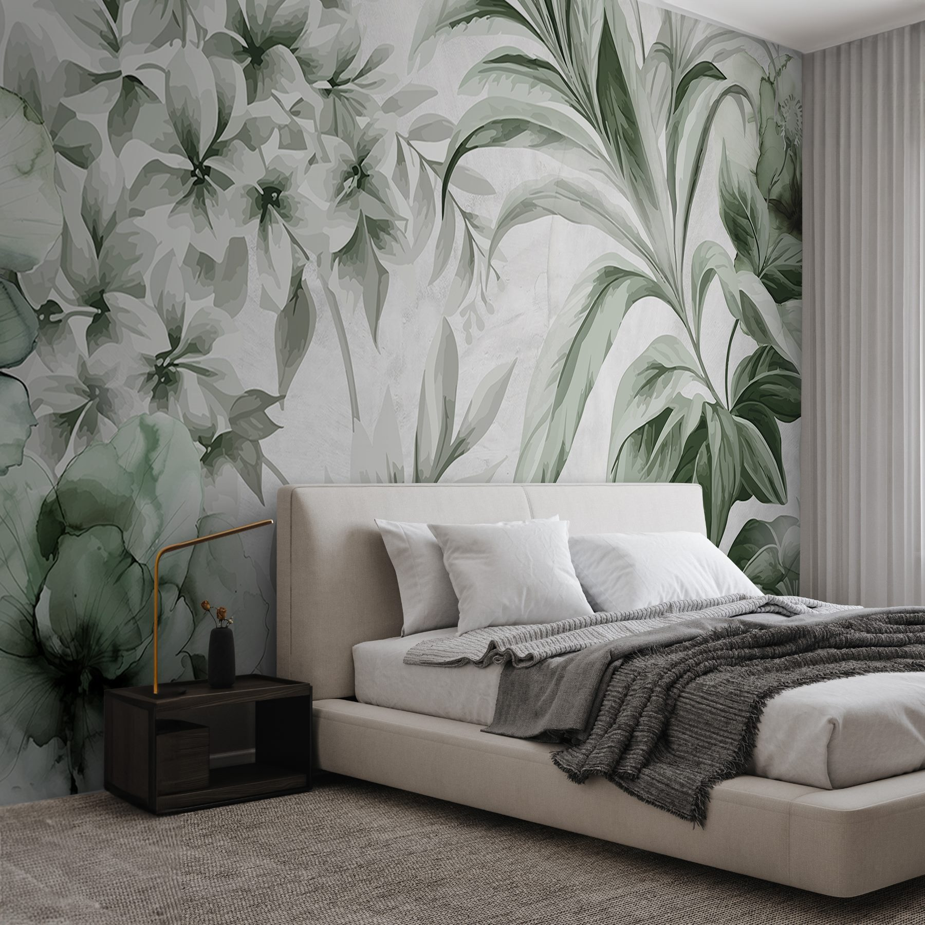 Verwandeln Sie jeden Raum mit dem Wandbild “Soft Hues of Botanical Elegance”. Stellen Sie sich vor: Sie sitzen in Ihrem Wohnzimmer, umgeben von zartem Grün und weichen Blumendrucken, die Ruhe ausstrahlen. Es ist, als ob man sich einen friedlichen Garten ins Haus holt – nur ohne die Allergieprobleme. Die sanfte Palette von Grüntönen und zarten Blüten schafft eine ruhige Atmosphäre, die perfekt ist, um sich nach einem hektischen Tag zu entspannen oder schöne Momente mit Freunden zu teilen. Vielleicht ertappen Sie sich sogar dabei, wie Sie von faulen Nachmittagen auf einer sonnenbeschienenen Wiese träumen. Es ist mehr als nur eine Wand, es ist eine Stimmung – eine gemütliche Einladung, sich zu entspannen und die Schönheit der Natur zu genießen, direkt zu Hause. Stellen Sie sich nur die Komplimente der Gäste vor, wenn sie eintreten!