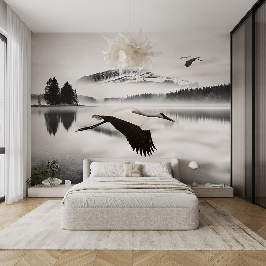 Verwandeln Sie Ihren Raum mit dieser atemberaubenden Fototapete “Bird Flying Over Water”. Stellen Sie sich eine heitere Landschaft vor, in der ein anmutiger Kranich durch einen nebligen See gleitet und Ruhe ausstrahlt. Es ist, als ob man sich ein Stück Natur ins Haus holt – ohne schlammige Schuhe oder Insektenspray! Dieses Wandbild eignet sich perfekt für eine leere Wand, die schon lange nach einer persönlichen Note verlangt, und bringt Ruhe in Ihren hektischen Tag.