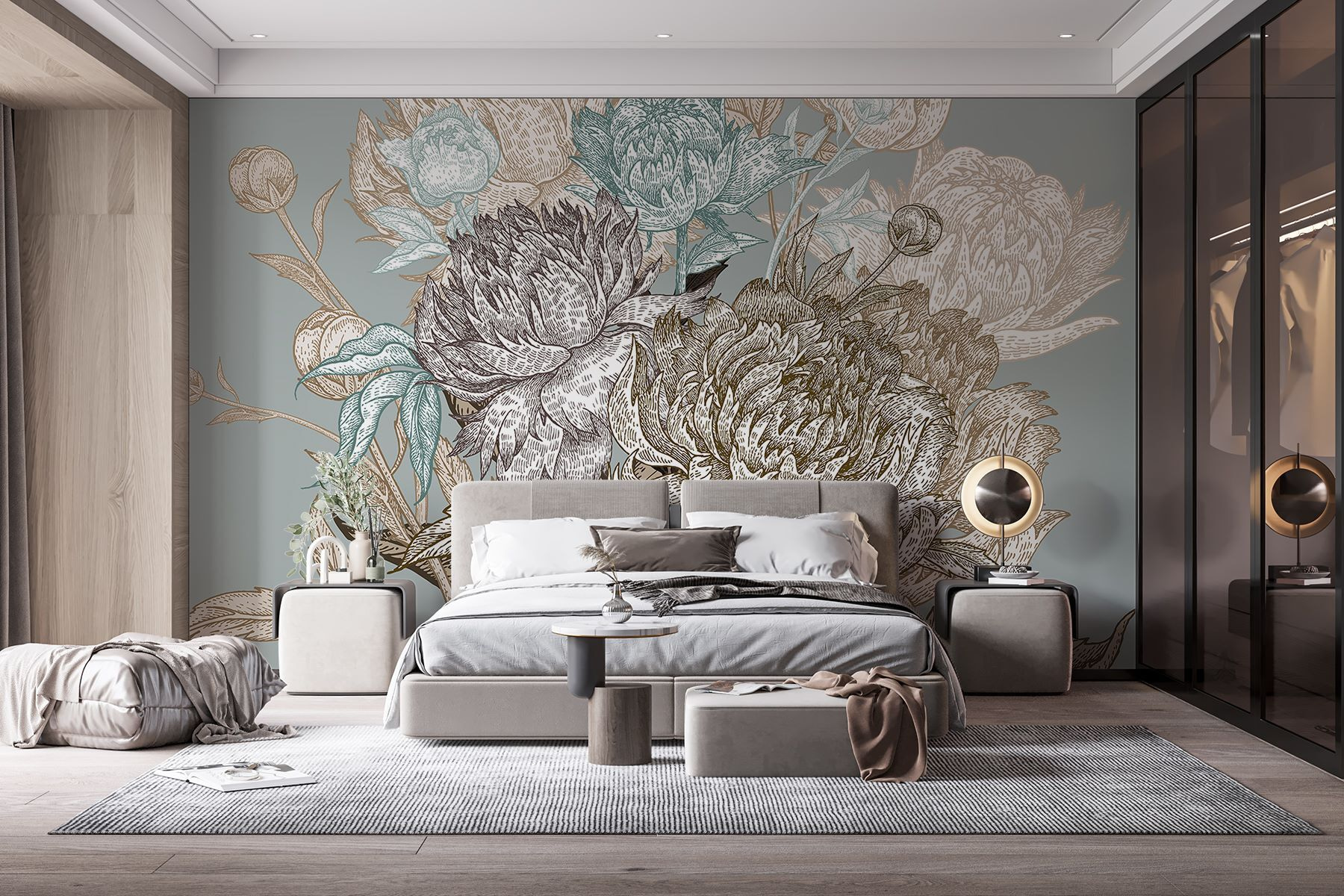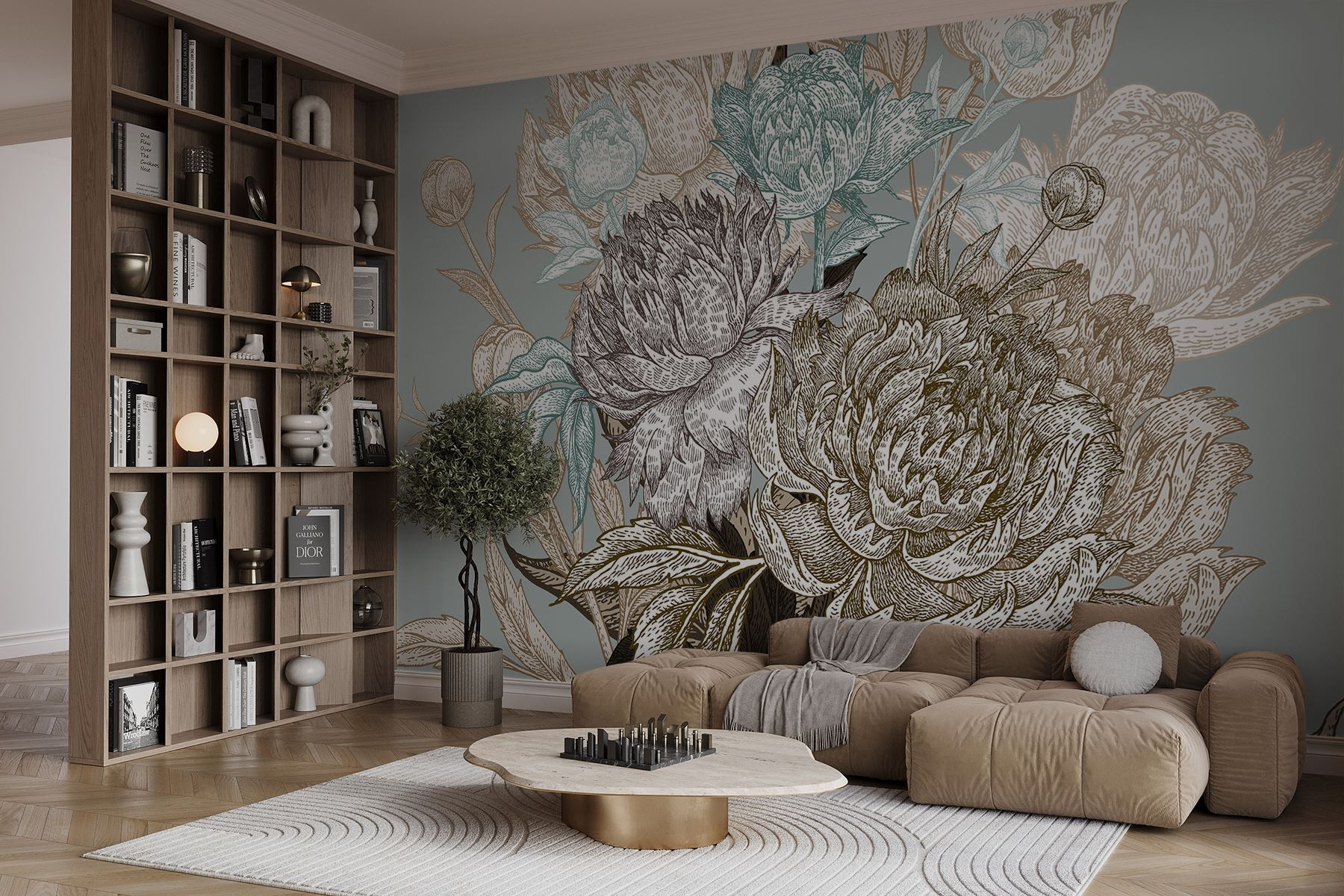 Verwandeln Sie eine langweilige Wand in eine gemütliche Gartenoase mit dieser atemberaubenden Fototapete mit Blumen! Mit seinen sanften, zarten Farben lädt es zu einer heiteren Atmosphäre ein, die Sie vergessen lassen könnte, dass Sie sich in einem Raum befinden. Stellen Sie sich vor, wie Sie sich mit einer Tasse Tee in der Hand in Ihren Lieblingssessel sinken lassen, umgeben von eleganten Pfingstrosen und zarten Blüten – wer hätte gedacht, dass Blumen so viel Frieden bringen können? Dieses Design strahlt zeitlose Schönheit aus und fügt sich mühelos in jeden Einrichtungsstil ein. Es ist perfekt für alle, die von einer verwunschenen Ecke träumen, denn es ist, als hätte man einen geheimen Garten zu Hause. Ist es schon Frühling?