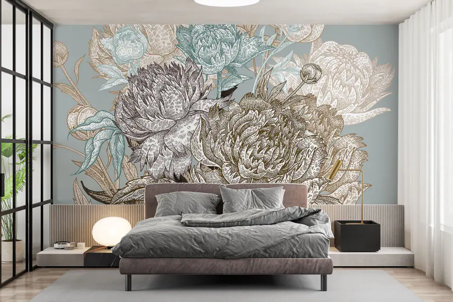 Verwandeln Sie eine langweilige Wand in eine gemütliche Gartenoase mit dieser atemberaubenden Fototapete mit Blumen! Mit seinen sanften, zarten Farben lädt es zu einer heiteren Atmosphäre ein, die Sie vergessen lassen könnte, dass Sie sich in einem Raum befinden. Stellen Sie sich vor, wie Sie sich mit einer Tasse Tee in der Hand in Ihren Lieblingssessel sinken lassen, umgeben von eleganten Pfingstrosen und zarten Blüten – wer hätte gedacht, dass Blumen so viel Frieden bringen können? Dieses Design strahlt zeitlose Schönheit aus und fügt sich mühelos in jeden Einrichtungsstil ein. Es ist perfekt für alle, die von einer verwunschenen Ecke träumen, denn es ist, als hätte man einen geheimen Garten zu Hause. Ist es schon Frühling?