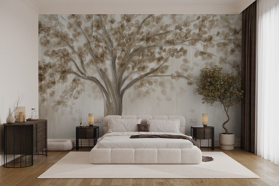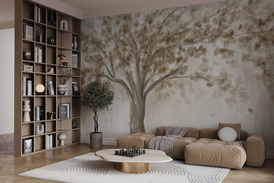 Stellen Sie sich vor, Sie betreten einen Raum, der sich wie eine friedliche Waldlichtung anfühlt, und das alles dank des Wandbildes “Fototapeten Tree with Leaves”. Dieses Wandbild bringt die Natur ins Haus, mit sanften Erdtönen und weichen Blattmustern, die Gelassenheit ausstrahlen. Es ist, als ob Sie einen Baum einladen würden, in Ihrem Raum Wurzeln zu schlagen – natürlich ohne den Pflegeaufwand!
