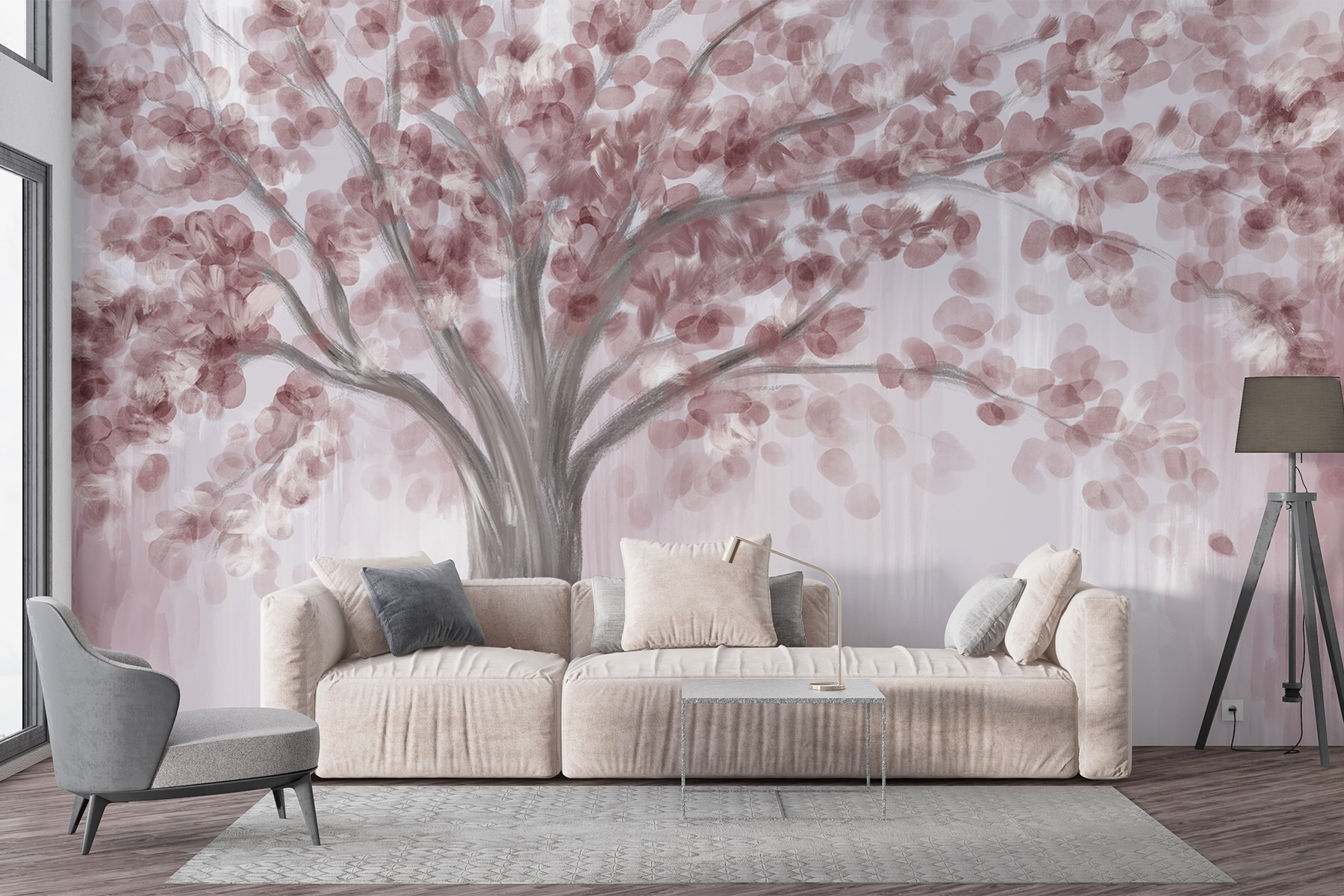 Verwandeln Sie jeden Raum mit dieser bezaubernden Fototapete, die einen atemberaubenden Baum mit zarten rosa Blättern zeigt. Es bringt einen Hauch von Natur ins Haus – perfekt für die Momente, in denen der Gang nach draußen einfach zu anstrengend ist. Stellen Sie sich vor, Sie schlürfen einen Tee, während Sie diese heitere Szene betrachten; es ist, als hätten Sie ein Stück eines japanischen Gartens direkt an Ihrer Wand. Die sanften Farbtöne laden zu Ruhe und Kreativität ein und sind die ideale Kulisse für eine gemütliche Leseecke oder einen inspirierenden Arbeitsbereich. Es ist nicht nur Dekoration, es ist ein Gefühl. Ein bisschen Kunst, eine Prise Laune und eine ganze Menge Charme – was will man mehr?