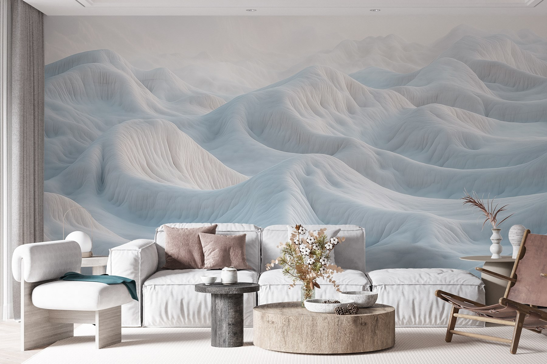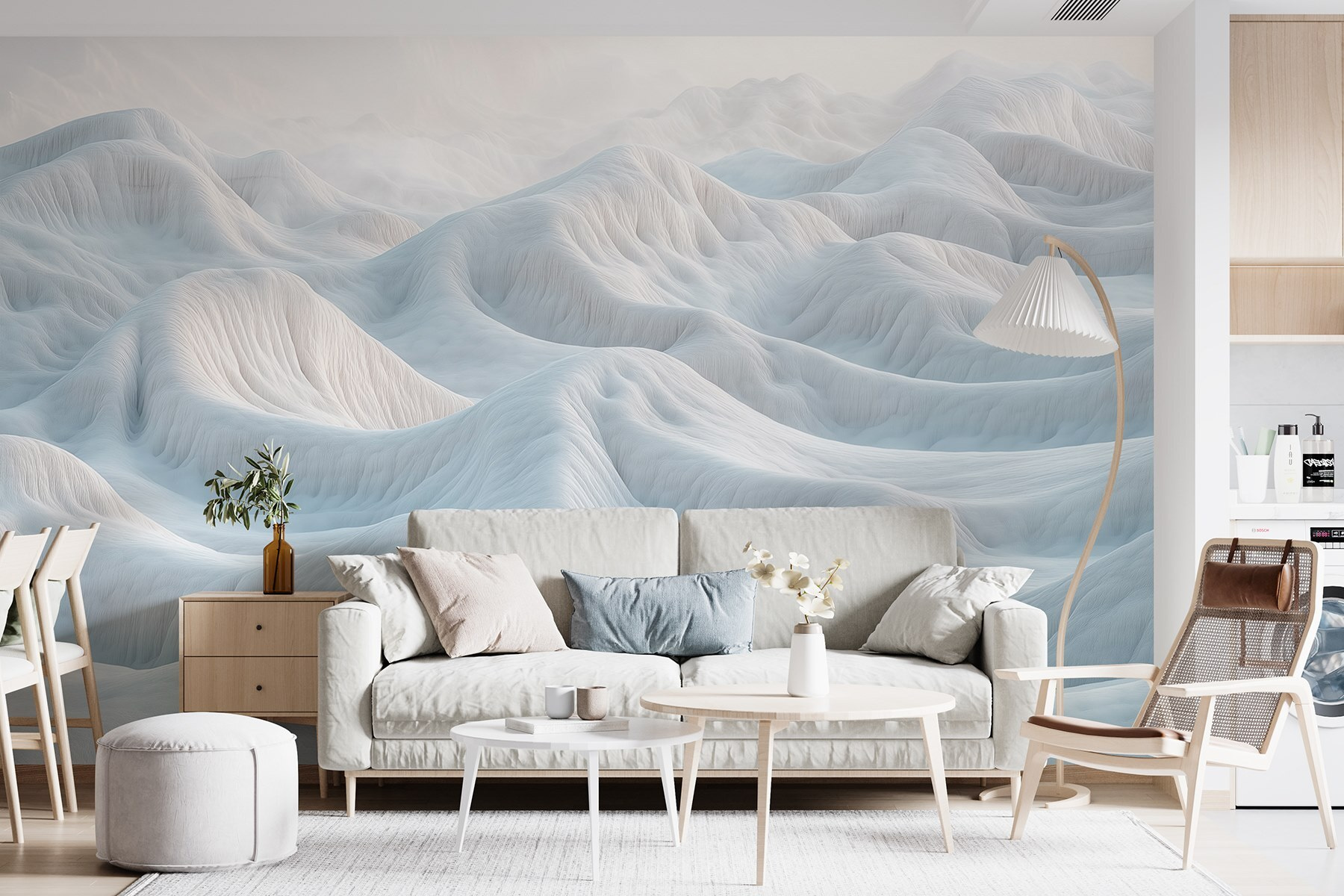 Stellen Sie sich vor, Sie betreten einen Raum und werden statt von schlichten Wänden von einem atemberaubenden Wandbild mit schneebedeckten Bergen begrüßt. Das ist nicht nur Dekoration, sondern eine Einladung, der Alltagshektik zu entfliehen. Stellen Sie sich vor, Sie nippen an einem warmen Getränk und spüren, wie die sanften Kurven des verschneiten Geländes eine friedliche Stimmung erzeugen. Das weiche Weiß und die subtilen Texturen flüstern fast Wintergeschichten. Es ist, als ob man sich ein Stück Natur ins Haus holt, nur ohne die Kälte! Perfekt für jeden Raum, der sich nach einem Hauch von Ruhe oder einer verträumten Kulisse sehnt. Wer würde das nicht wollen?