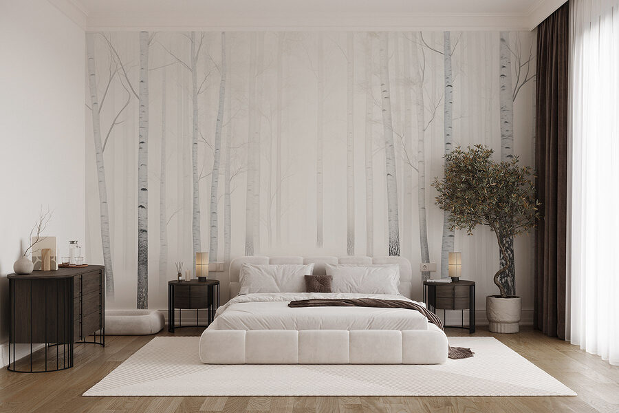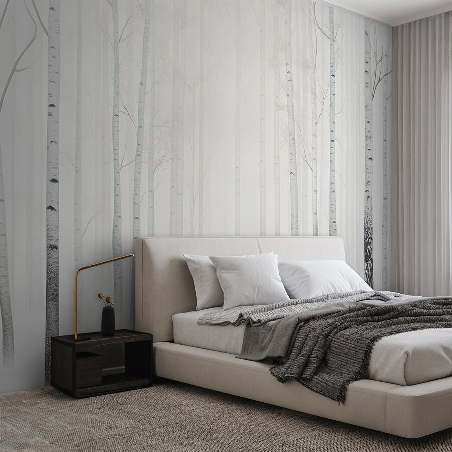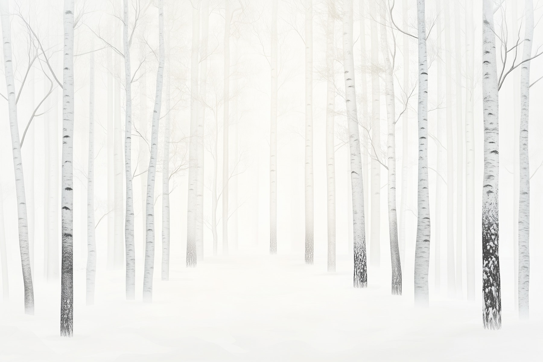 Verwandeln Sie Ihren Raum in ein ruhiges Winterwunderland mit dieser Fototapete, die eine Gruppe von Bäumen in einem verschneiten Wald zeigt. Stellen Sie sich vor, Sie wachen mit einer beruhigenden Szene von Birken auf, deren schlanke Stämme hoch und stolz vor einer weichen, verschneiten Kulisse stehen. Es ist, als ob man sich ein Stück Natur ins Haus holt – kein Schneeschaufeln erforderlich! Diese Fototapete strahlt Ruhe aus und eignet sich daher perfekt für gemütliche Ecken oder ein ruhiges Schlafzimmer. Stellen Sie sich vor, Sie machen es sich mit einem heißen Getränk, weichen Decken und dem sanften Rauschen des draußen fallenden Schnees gemütlich. Ein perfekter Rückzugsort, direkt in Ihrem eigenen Zuhause!