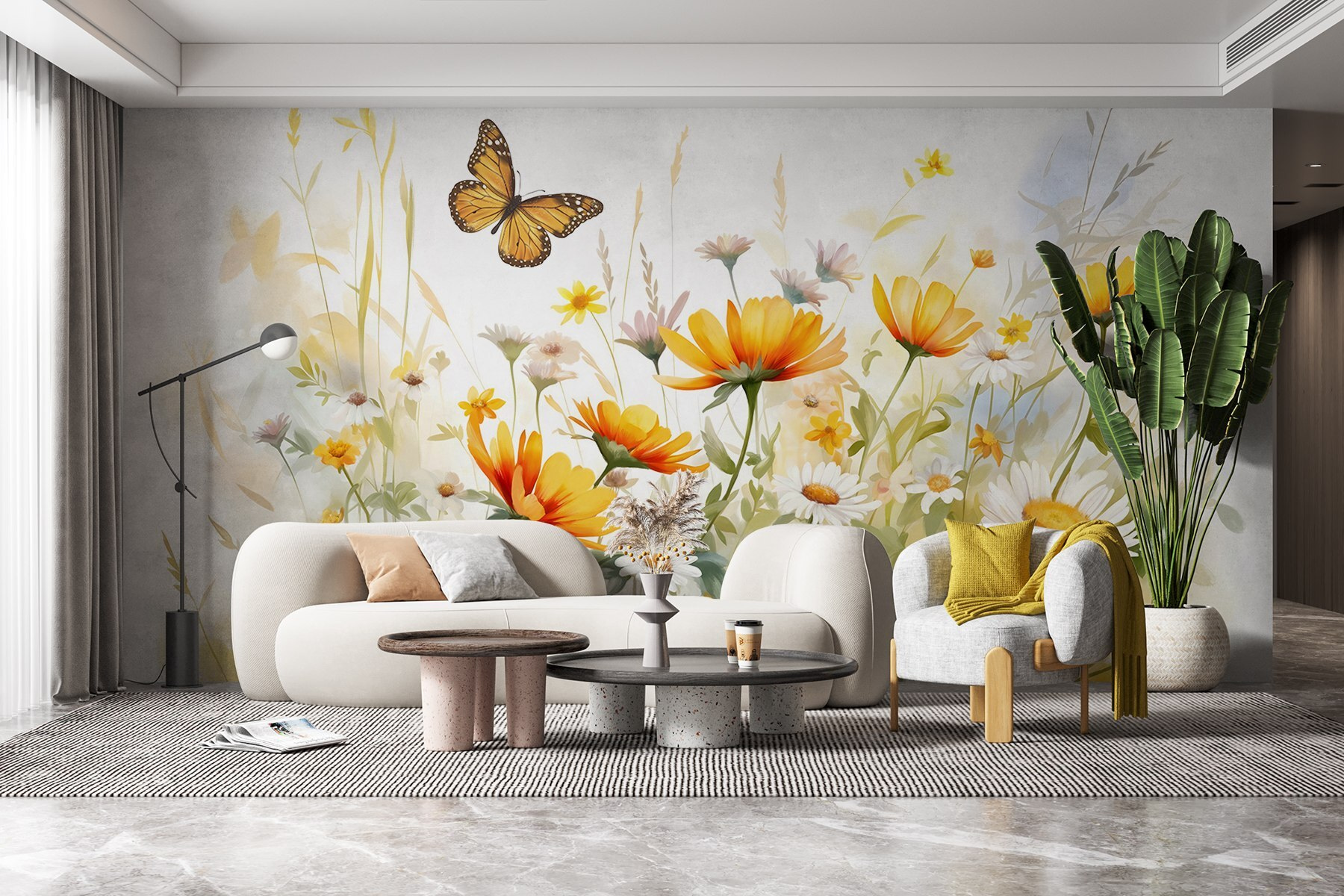 Verwandeln Sie Ihren Raum in einen lebendigen Garten mit dieser atemberaubenden Fototapete mit einem Schmetterling, der über ein Blumenfeld flattert. Es bringt einen verspielten Hauch von Natur in jeden Raum, der sich frisch und einladend anfühlt. Stellen Sie sich vor, wie Sie an Ihrem Kaffee nippen, während Sie sich in dieser fröhlichen Szene sonnen – es ist, als hätten Sie einen Hauch von Frühling direkt an der Wand, nur ohne die Pollen, die Ihnen Kopfschmerzen bereiten. Die Farben heben Ihre Stimmung und inspirieren Ihre Umgebung. Es ist die perfekte Kulisse für eine gemütliche Leseecke oder ein lebendiges Spielzimmer. Wer würde nicht gerne in diese blumige Fantasie eintauchen?
