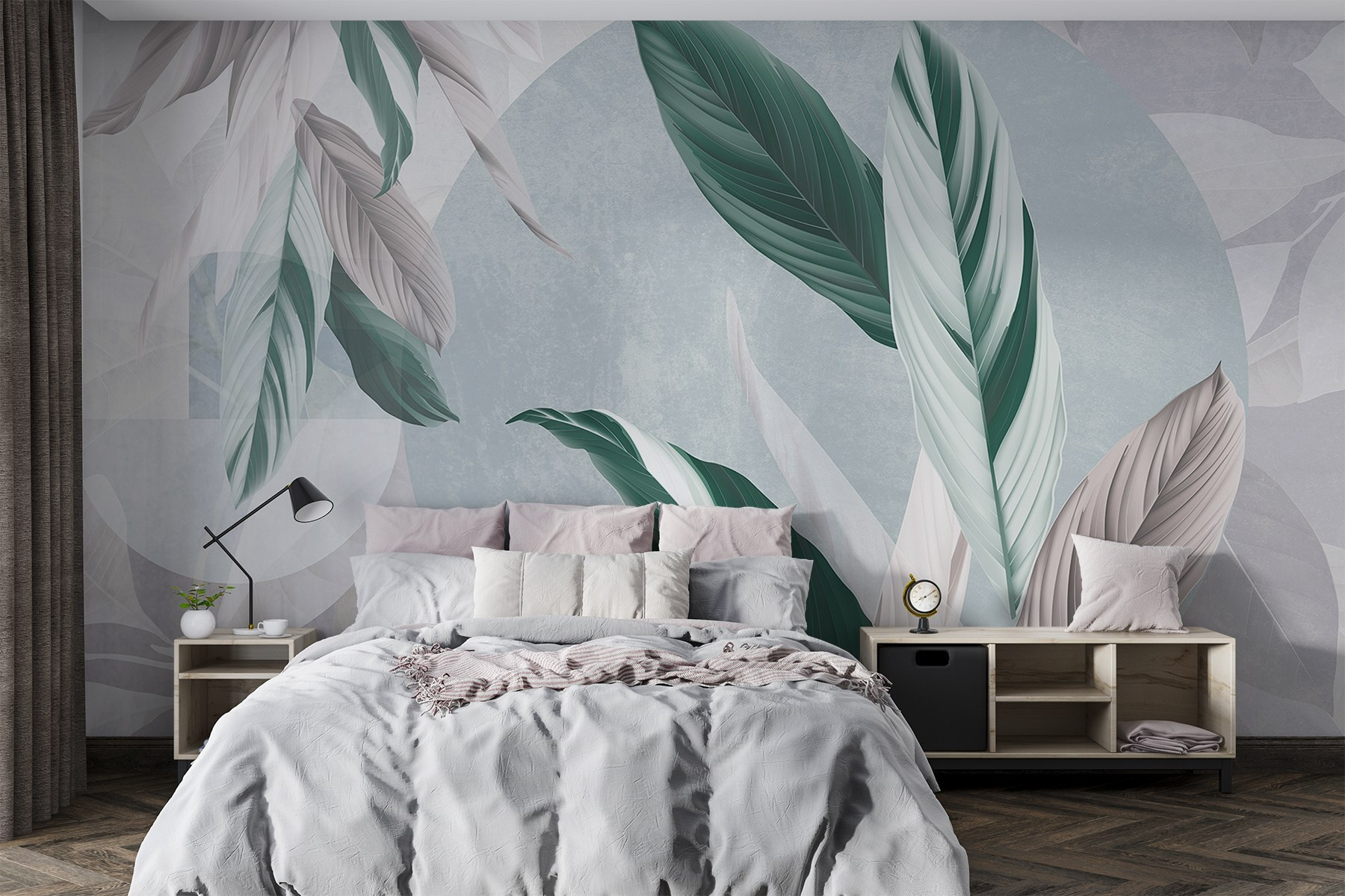 Verwandeln Sie Ihren Raum mit „Nature’s Delicate Leaf Patterns“. Die sanften Farbtöne und eleganten Blattmuster dieser Tapete sorgen für eine ruhige Atmosphäre und lassen jeden Raum wie einen gemütlichen Rückzugsort im Garten wirken. Stellen Sie sich vor, Sie trinken Tee und betrachten diese beruhigenden Muster – es ist wie ein kleiner Urlaub in Ihrem Zuhause! Die sanften Grün- und Grautöne passen fast überall hin und verleihen Ihrem Zuhause einen Hauch von Natur, ohne dass Sie sich um die Pflege kümmern müssen (auf Wiedersehen, Gießkanne!). Perfekt für eine Leseecke oder sogar ein lebhaftes Wohnzimmer, erinnert es daran, dass Schönheit sowohl einfach als auch atemberaubend sein kann. Wer würde diesen mühelosen Charme nicht wollen?