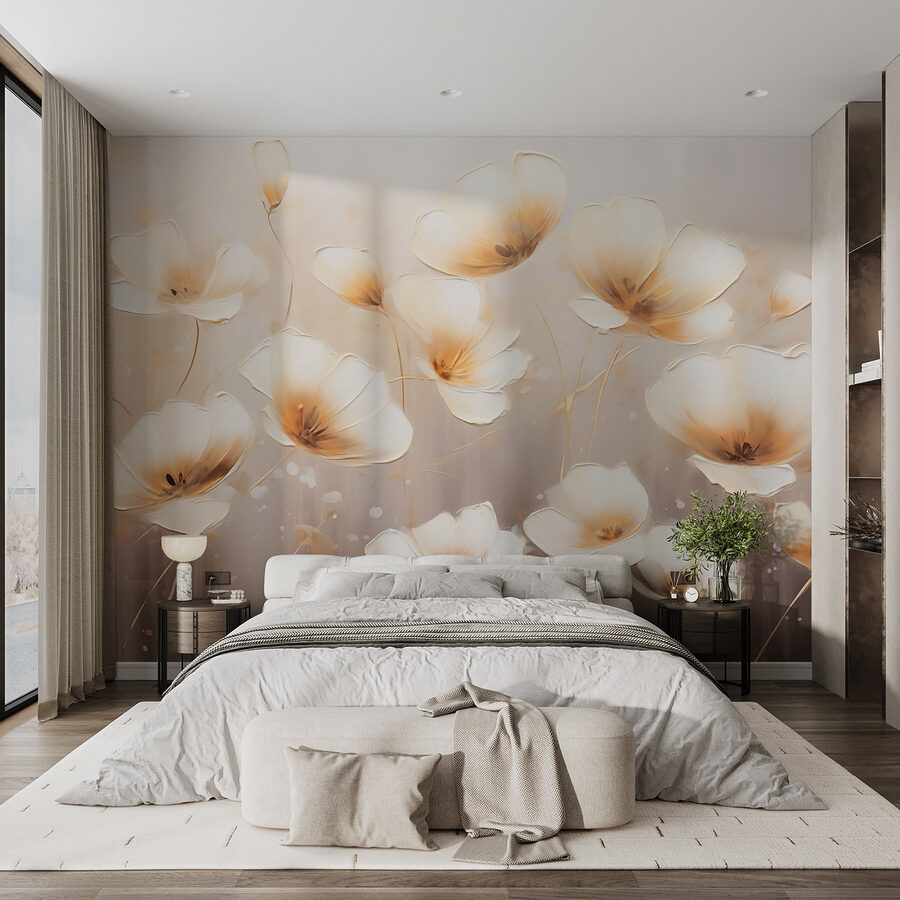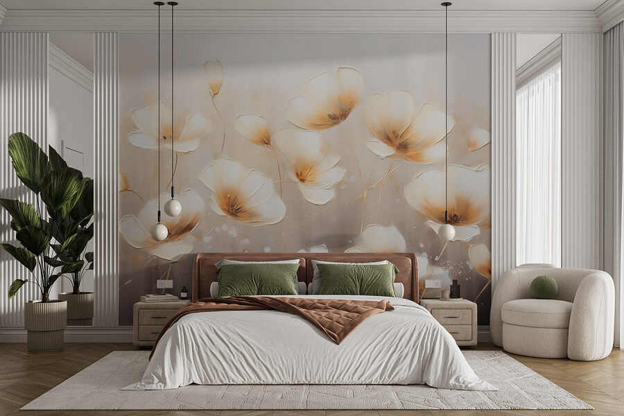 Stellen Sie sich vor, Sie betreten einen Raum, der sich dank dieser atemberaubenden Wandtapete wie ein sanfter Frühlingsmorgen anfühlt. Mit dem Titel „Wandtapete mit Blumen auf weißem Hintergrund” zeigt sie zarte Blumen, die vor einem sanften, einladenden Hintergrund tanzen. Es ist, als würde man einen Garten ins Haus holen, ohne eine Gießkanne zu benötigen.